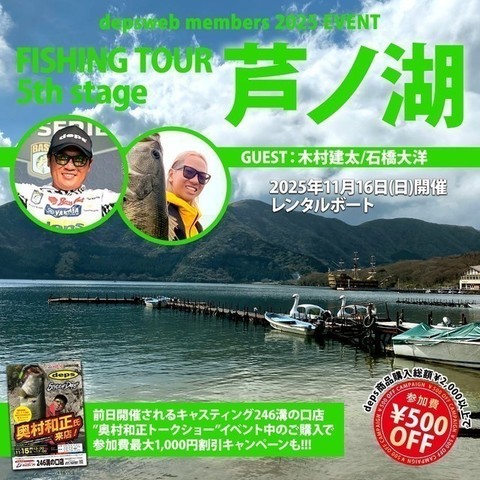 プロ来店・トーク・セミナー・展示会・大会・釣り教室など、
