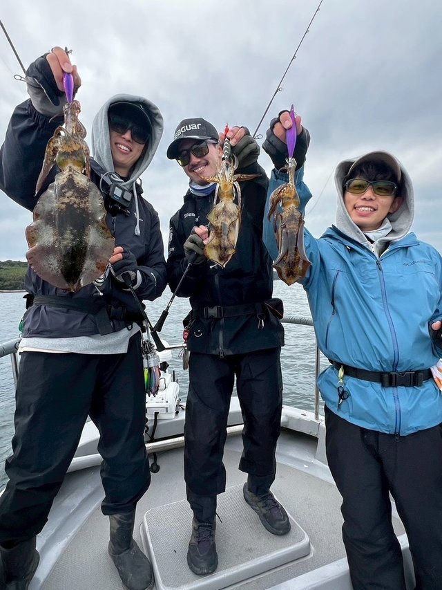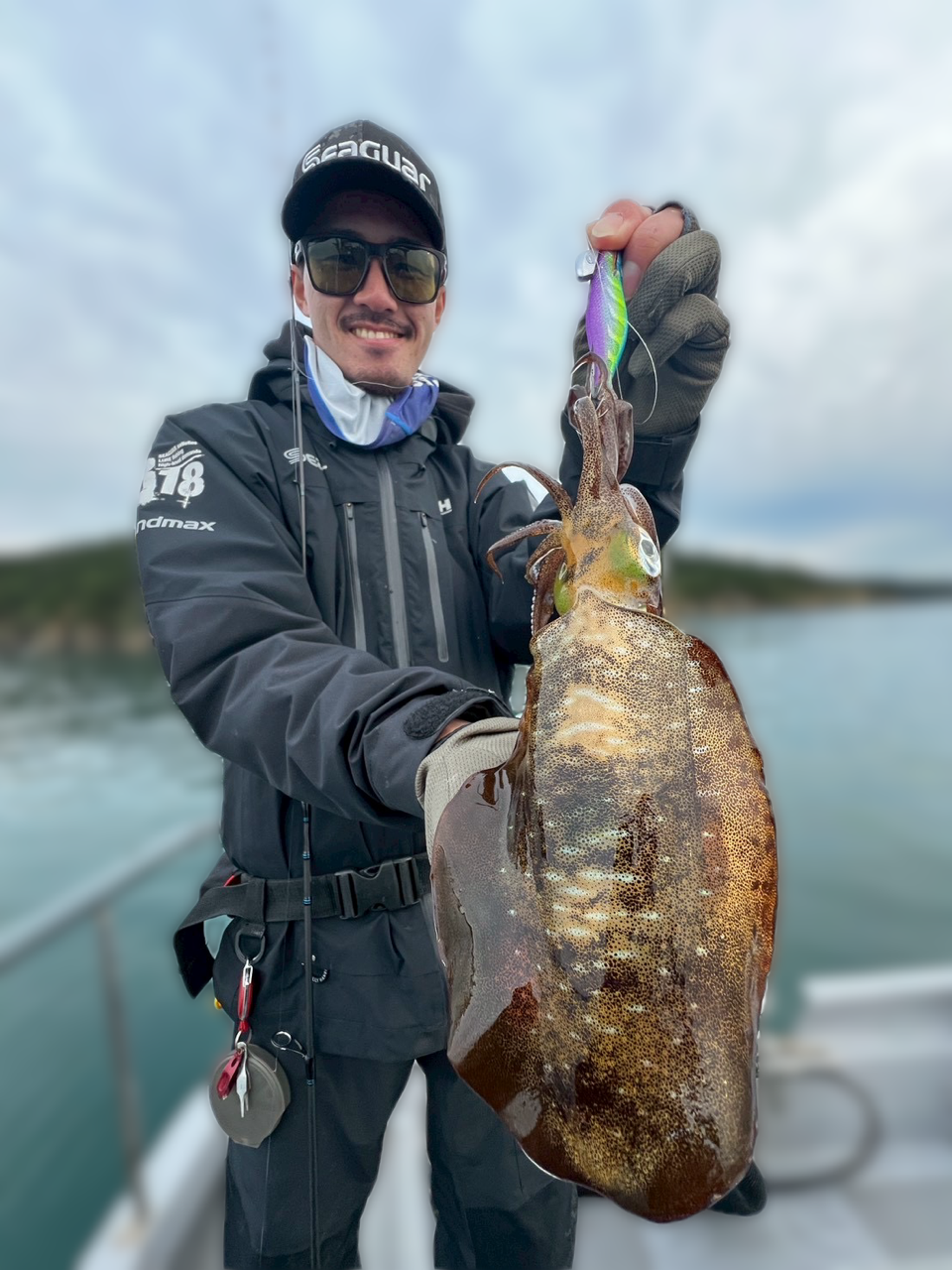 午前は風が強く吹く為、10時出船!若干、風を避けるエリアからスタートすると早速、同船者にヒット!500~600g程の良いアオリイカッ!前回よりも大分、大きくなっていました!そうして、約2~3時間、、、。なぜか自分だけ釣れない時間が続く(笑)逆にちょっと楽しい状況でした。