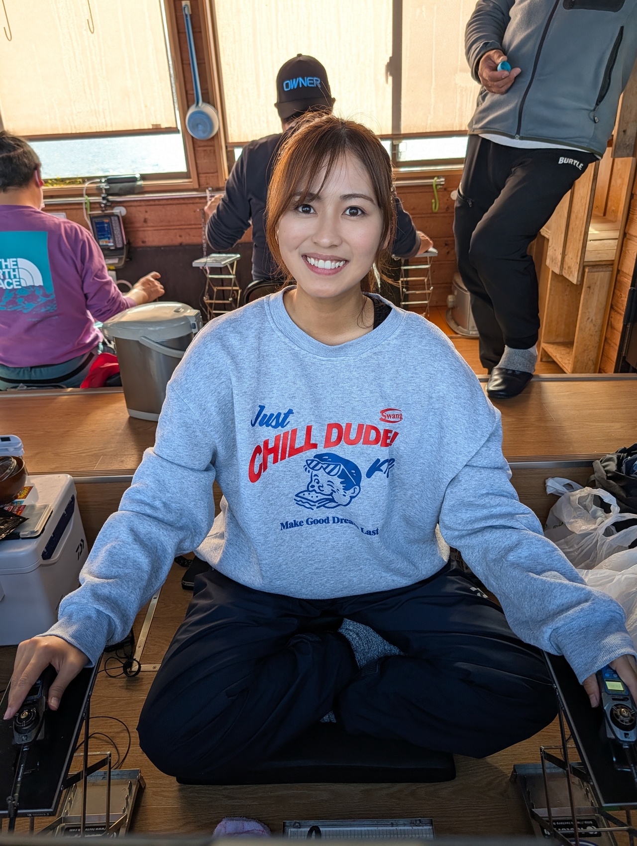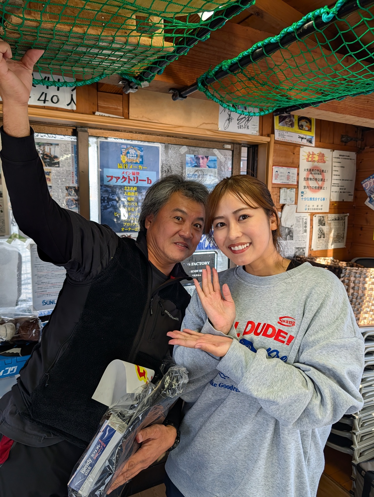 優木さんはワカサギの経験がなかったため事前にワカサギ釣りをしてもらう(1回目は釣りを2回目は当日使うタックルを貸すので1人で準備と片付けができるようになってもらう)ことを条件にお引き受け頂きました