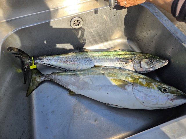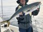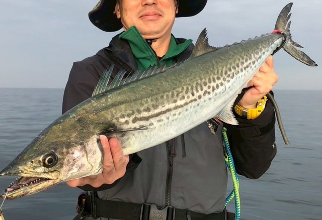 こんにちは(*´∀`)岩槻インター店スタッフ稲垣です。今回は初めてのサワラ釣りに東京湾へ行ってきました!朝霞店の黒葛原さんと友人T船長とSさんで浜野マリンハーバーさんからボートをレンタルして友人T船長の操船でいざ出船♪サワラの釣れるポイントなど全く分からないので、友人のT船長が魚探で地形の変化などを見て『分からないけど、ここでやってみよう!』と試しに釣り開始。なんと!1投目で友人Sさんがヒット!ロッドは大きく曲がりドラグが出てる!ユラユラと上がって来た魚は大本命のサワラ!ランディングに成功し船上は歓喜で大盛り上がりでした。一気にボルテージが上がり皆でジグを投げて一心不乱に早巻きを繰り返しますが無の時間が続く…。集中の糸が切れつつある頃に友人Sさんに再びヒット!今度もロッドが大きく絞り込まれ寄せてはラインを出され中々上がってこない。なんとか上がって来た魚はなんと!立派なワラサ!再び闘志に火が付き、ひたすら早巻き。リールから煙が出る勢いで早巻きするも無の時間が訪れ、生命反応欲しさに他の釣り方に手を出してみたら私の竿に何かが掛かった。全く引かないのでゴミか石かな?と思って見えてきたモノはなんと…サメ(^_^;)何かしら釣れて嬉しいけど、なんとも微妙な感じでしたw。その後も無の時間が続きあっという間に終了時間間近。港に帰りつつシーバスも狙ってみようと沖堤防付近を探ると友人T船長に可愛いシーバス♪黒葛原さんもシーバスが釣れましたが抜き上げと同時にオートリリース(汗)とワチャワチャ楽しんで納竿となりました。また必ずリベンジ行きたいと思います。