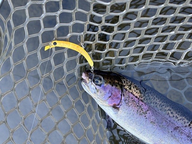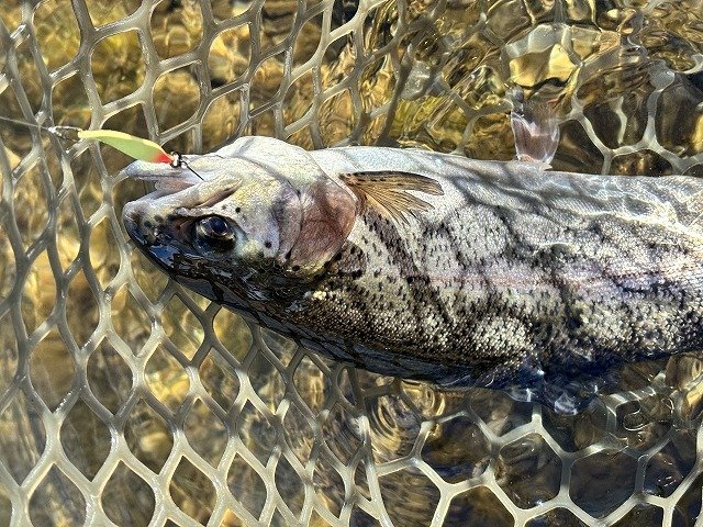 昨日と同様活性が高く浮上系ミノー、トッブの反応が良かったです。スプーンのフックセッティングを色々試すことができました。