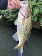 揚沢入口付近にポイントしぼりカバーのしたにネコリグを投げ込むと運良く枝に掛かり吊るしの状態でバスが食ってきました!