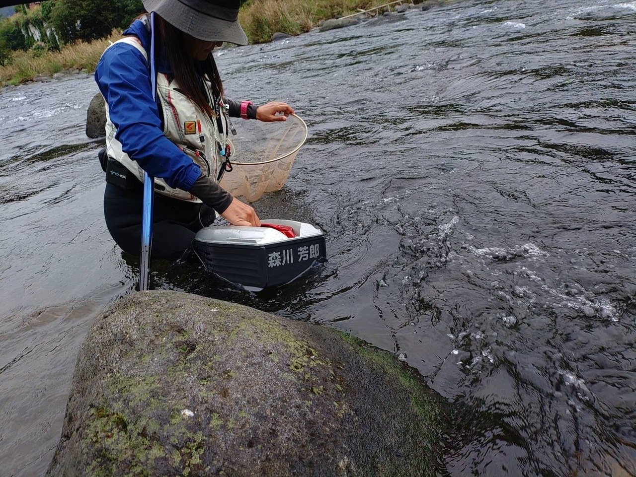 見兼ねた師匠からフレッシュな野鮎を恵んでもらい、なんとか1匹追加!!しかしまた根掛かりで・・・・1回目の根掛かりは自分でどうにか取りに行き体力の大半を使い果たし、川の中を移動するのもヨレヨレ。お婆ちゃん状態。もう次は無理だ、、っとなりまして2回目3回目の根掛かりは森川さんに外してもらいました。手の掛かる弟子でスミマセン~。