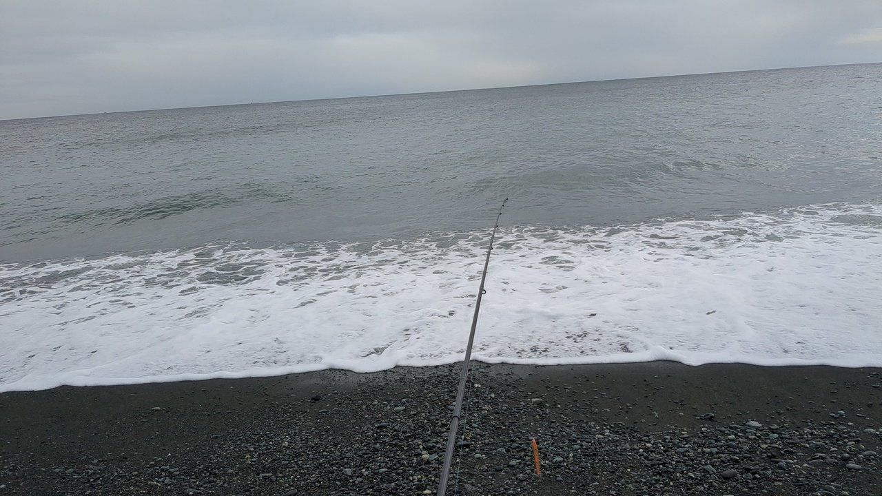 奥様から時間をいただき仙南サーフへ。ヒラメが釣れれば御の字と思いながら現場へ到着すると、さらっと雨が降り風も吹く状況でなかなか寒い!防寒ウェアを着込んでいざサーフインです。
