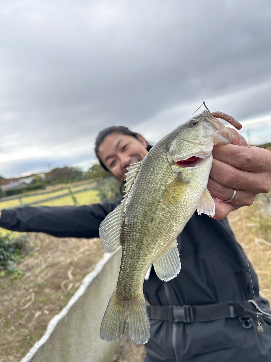 このルアーチェンジが、功を奏して護岸際の水中障害物に当たった直後にヌン!と微妙なバイト急な冷え込みで元気いっぱいとはいきませんが、ナイスサイズをゲット!