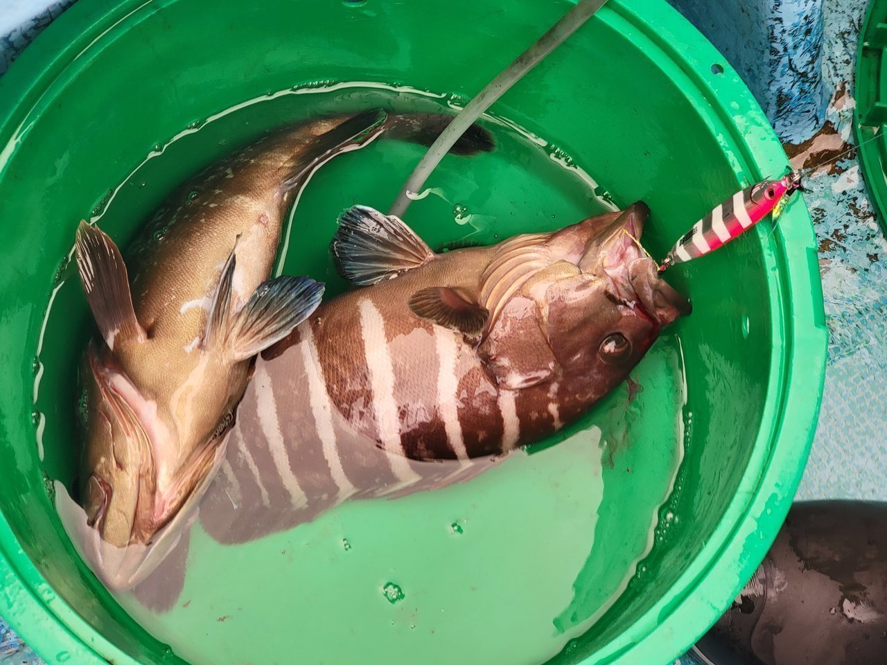 さらに、その直後にも同じサイズのマハタをGET!!今日は入れ喰いかと一瞬思いましたが、その後私は完全に沈黙。結局マハタ2匹で終了しました。