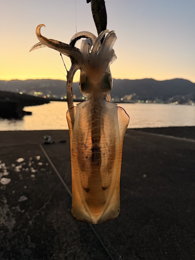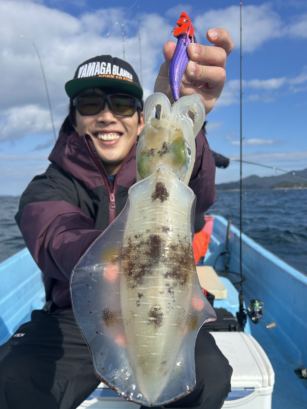 服部くんに「疑心暗鬼アワセはダメだよ!」と言われたので、次のアタリは大きくアワセて本命アオリイカもゲットできました!