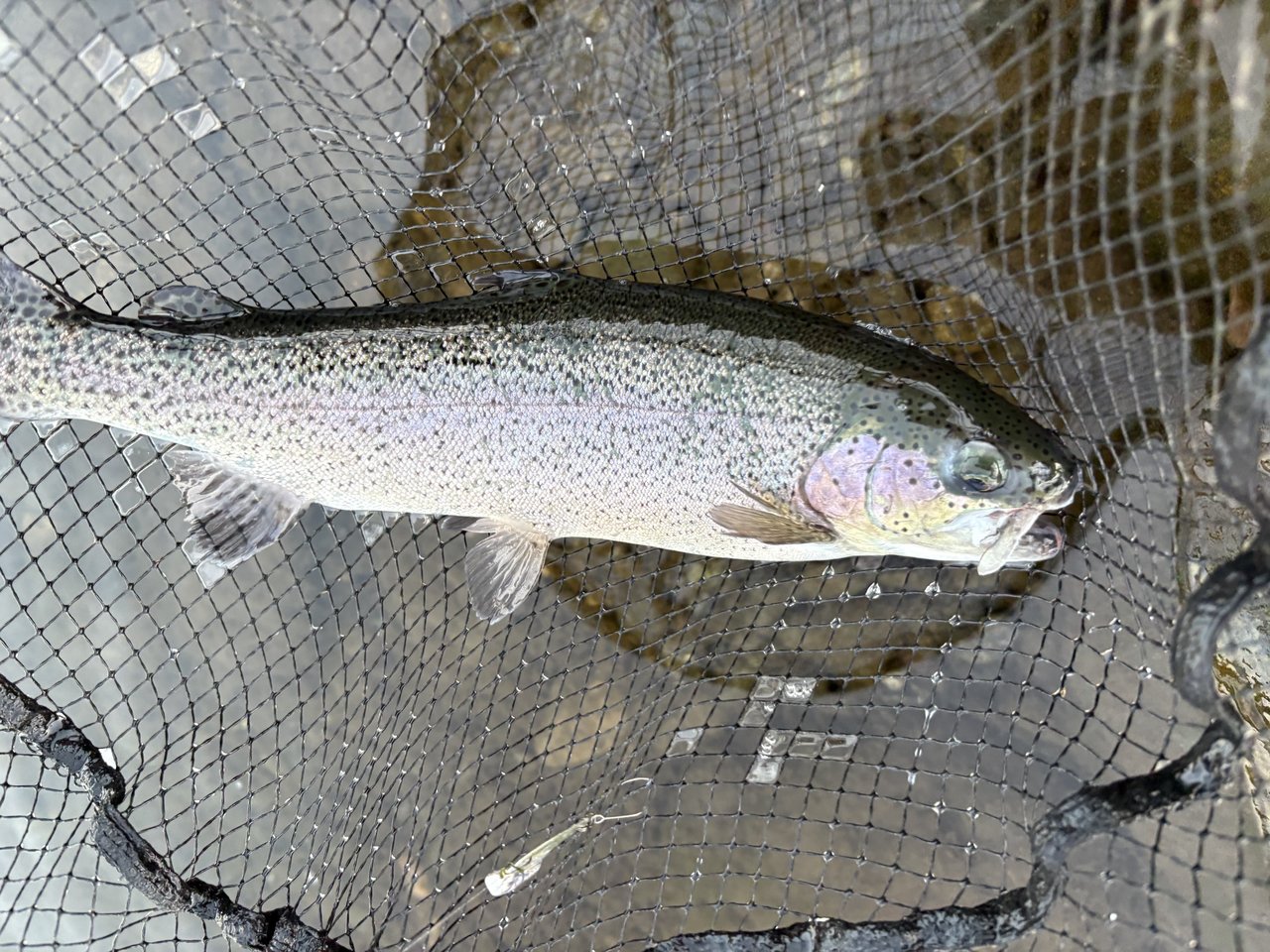 東久留米店吉田です。来週の大会に向けて練習です。本来は東山湖ですが土日は上も下も帰りが混むので、混まずに下で帰れる安定の鹿留にします。朝の気温は-1℃、水温は9℃。先週より3度も高いです。そのせいか開始から重めのスプーン派手めカラーで連発!日が当たったらボトム展開へ。プラグ、スプーン共に練習します。放流が入る前にクランクも練習。深めでポツポツ。お昼前に放流が入りますが釣れ出したタイミングで同行のお客様はタイムアップ。休憩挟み午後もソロ練。午後放流もまずまず12~3本獲れ、隣の方も結構釣っていたので良い刺激になりました。その後夕方に向けて前回は活性が上がったのですが、今回は曇ってしまい水温が上がらなかったせいか逆にテクニカルに。浮上系ミノーとウッサで10本ずつ程釣れて終了としました。そろそろ次回は東山湖にプラに行きたいと思います!
