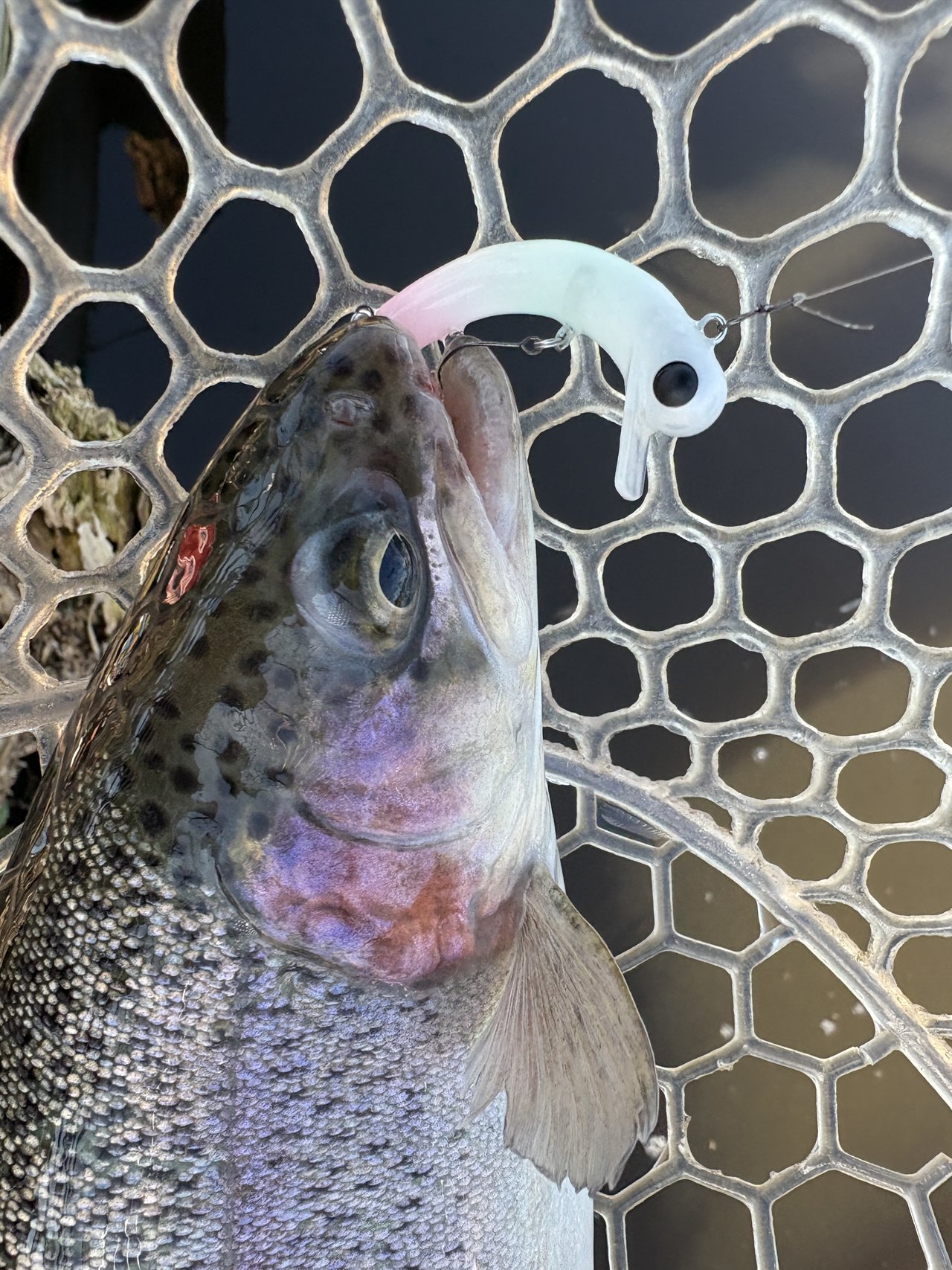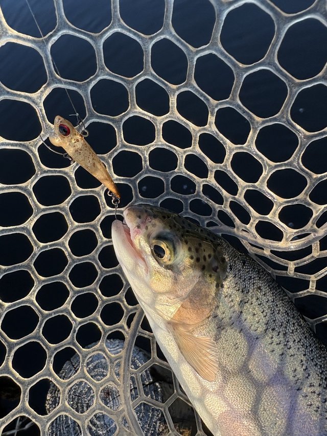 朝一は、前に降った雪解けが入り魚の活性が極端に下がり大苦戦その中ボトムを丁寧にやるとポツポツ釣っている方もいましたが、自分は巻き中心の釣りなのでなかなかアジャスト出来ませんた。