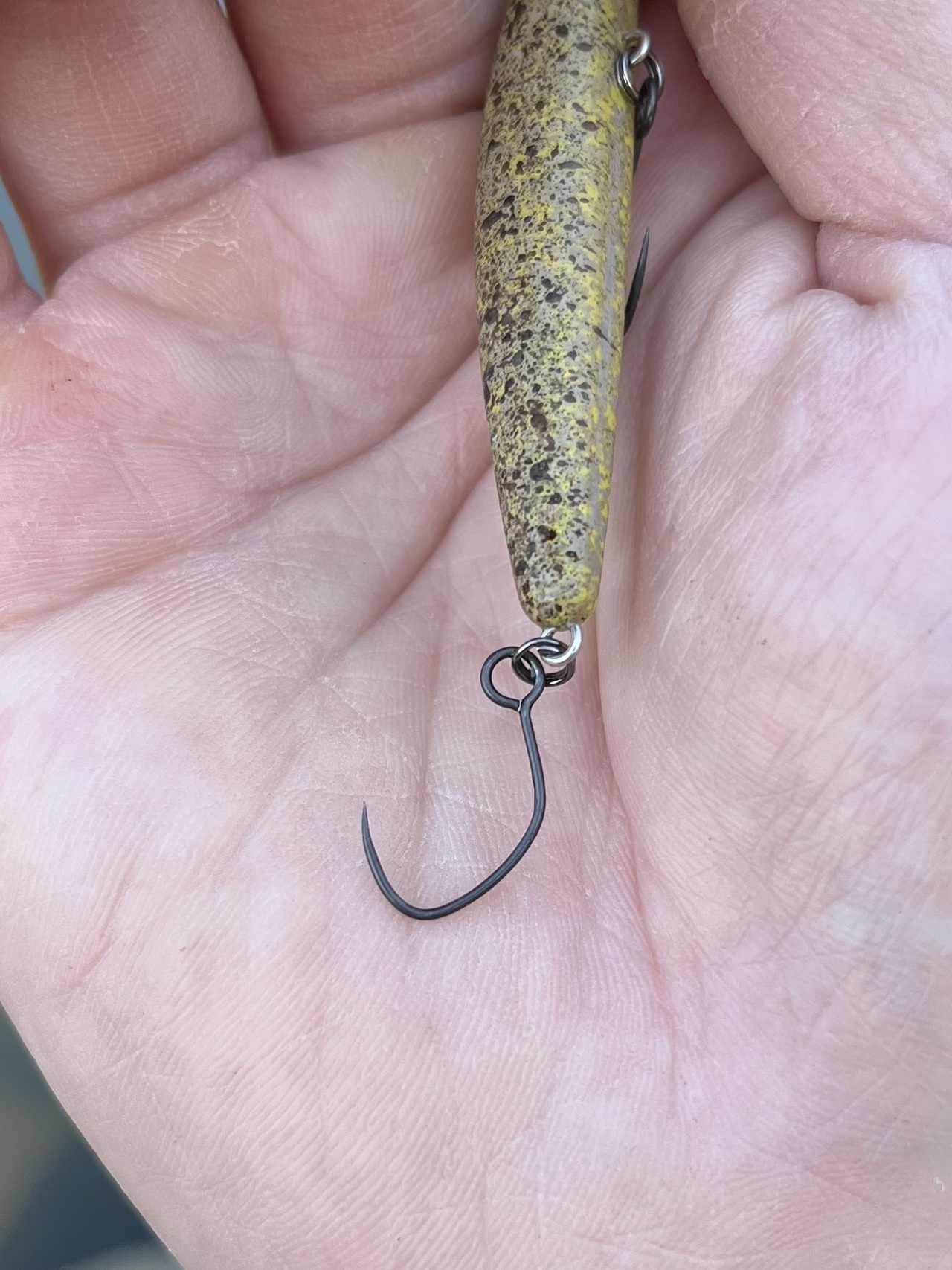アタリが瞬発的かつ大きめに出るので、タックルの反発でルアーが魚の口に残ってない様子。