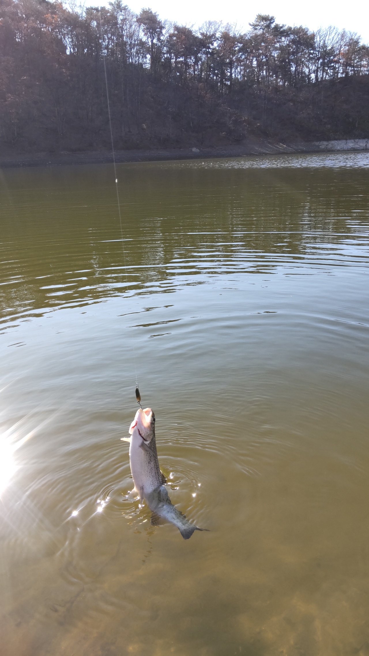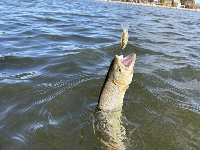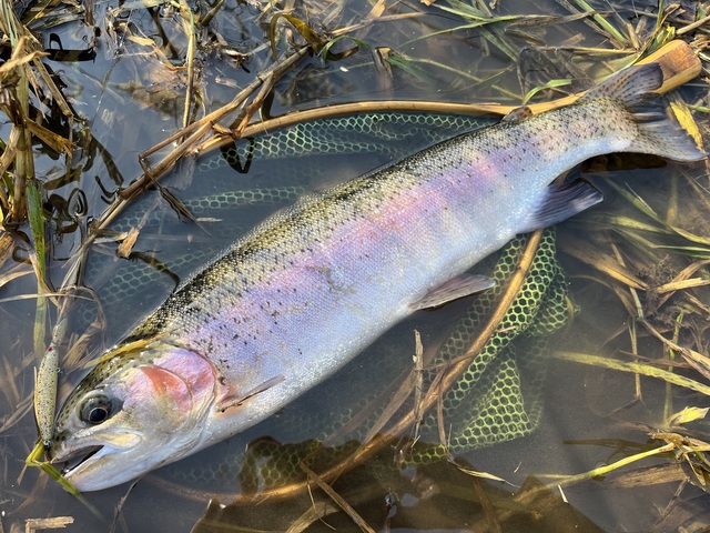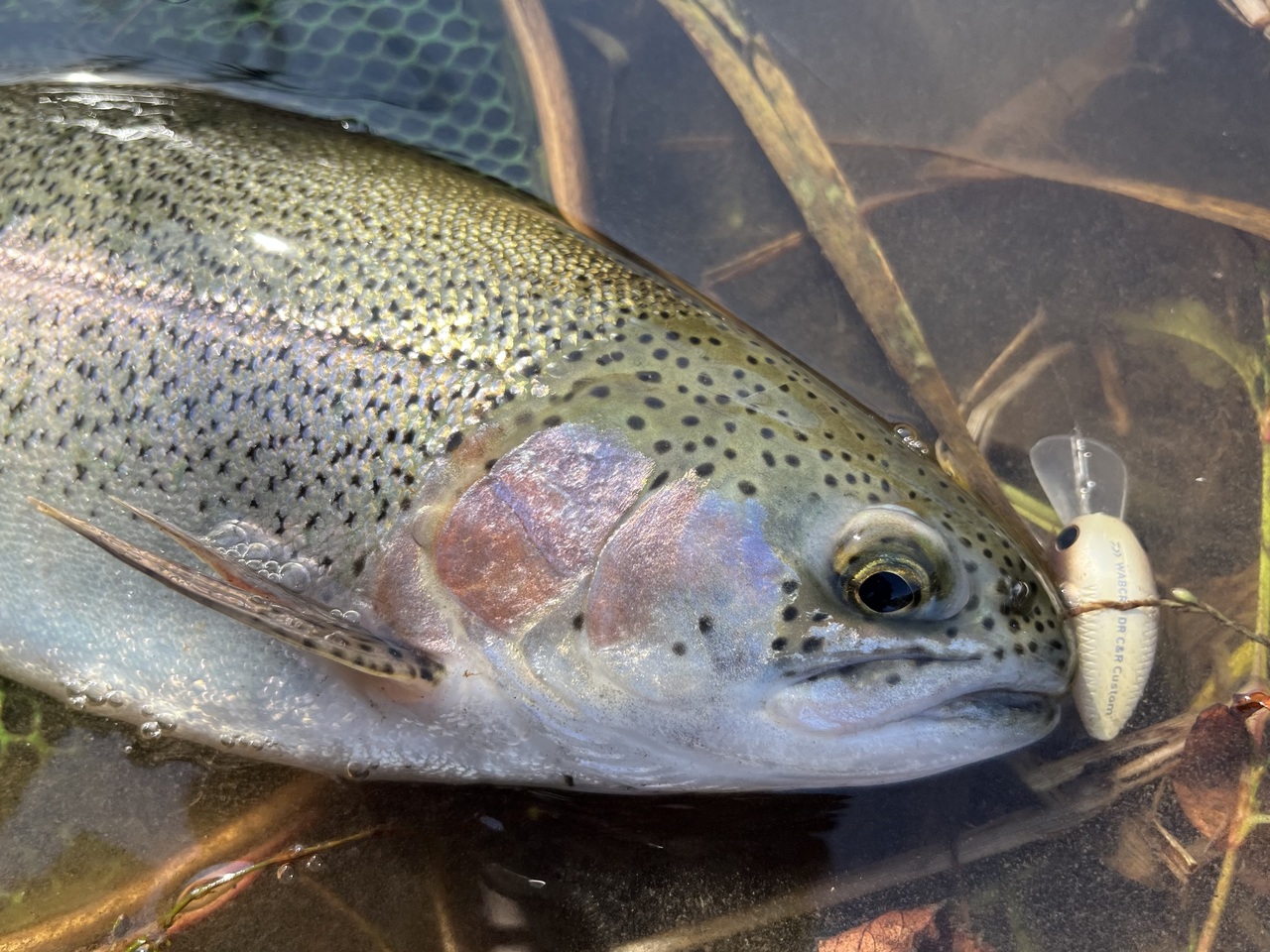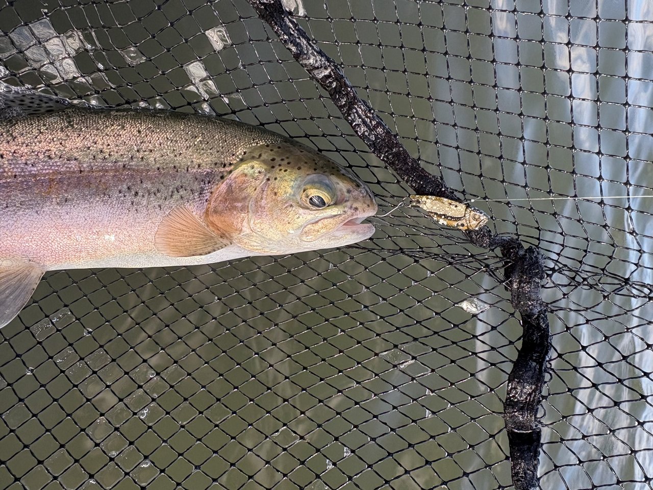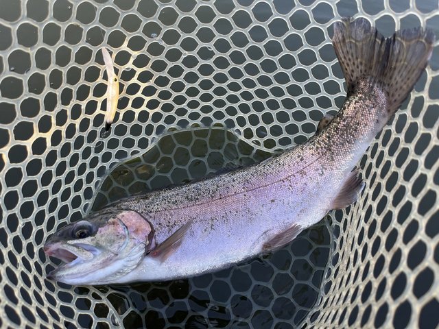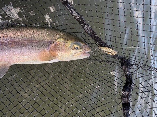 ルアー池は今日は私にも優しかったです。マイクロスプーンを目線を上で巻いて釣れたり、浮上系ミノーで連発タイムもあったり、足元に中型のサクラマス?が縄張りを張っていたのでダートマジックで釣ったりと、クローズまで楽しめました。