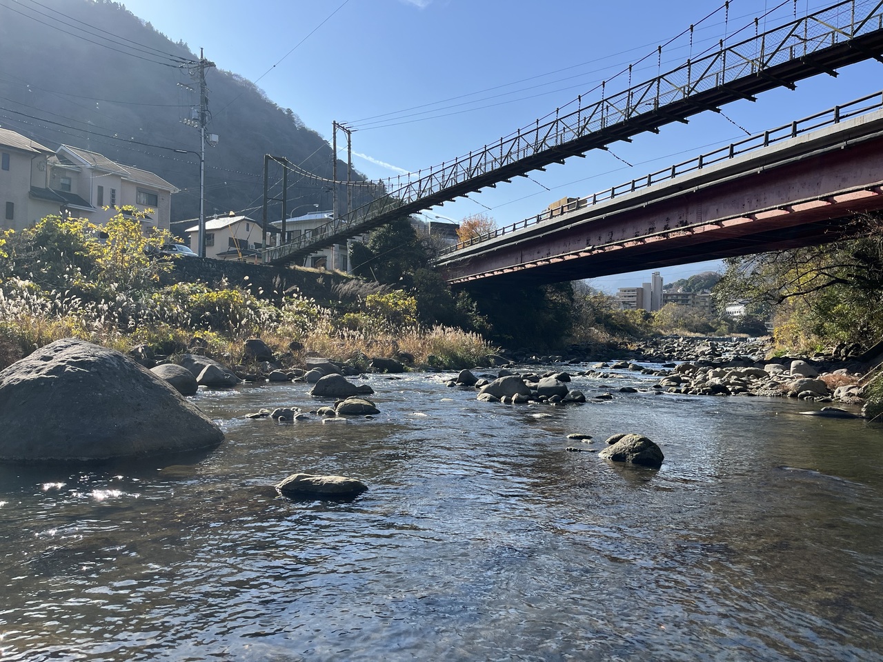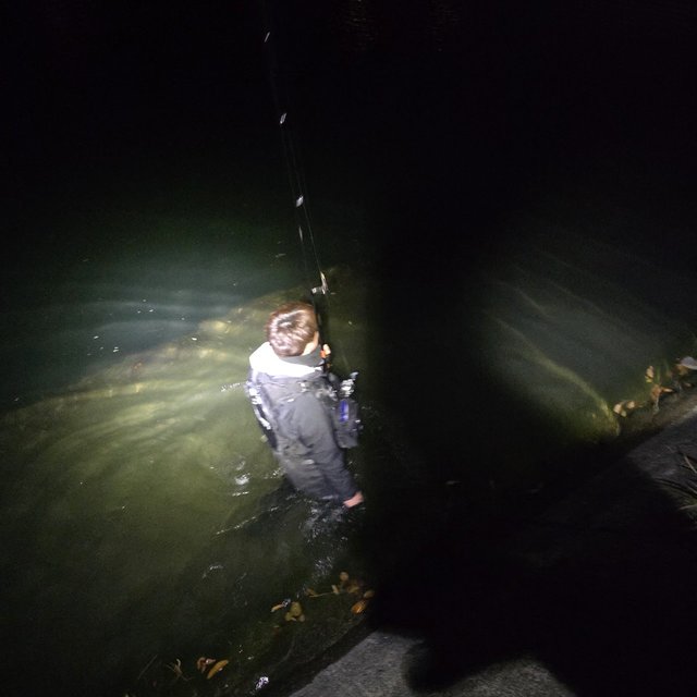 手前のカケアガリに当たる手前でグン!と持っていかれて釣れます。