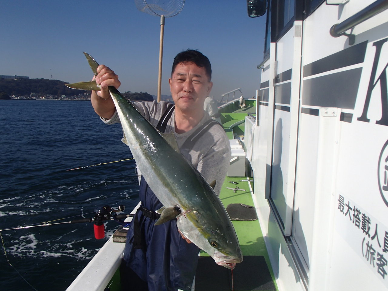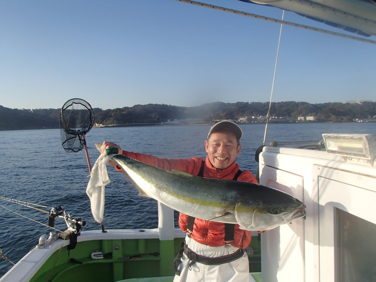 走水のビシアジへ行ってきました。船宿はいつもお世話なっている関義丸さんです。今回も仲間6人での仕立てです。沖に出てすぐに泳がせ釣りができるように出船前にサビキ釣りするのが恒例なのですがコマセを撒いても魚が全く寄らず不発でした。連日アジが厳しい状況と聞いてたのですが、前回のような厳しさはなくコンスタントに釣れ上がります。しかし25cmほどの中型主体で35cmを超える大型はなかなか釣れてくれません。しかし開始早々に釣れたアジを投入し底立ちを取ると直ぐに暴れだし青物が食いつきました!PE8号ハリス16号なので電動のパワーで一気に巻き上げます。無事タモに収まったのは7.9kgのブリ、一投目の着喰いは初めての経験でした。その後仲間に7.8kg、さらに私も5.8キロを追加し泳がせは大満足の結果となりました。アジはあまりぱっとせず最終的に23匹の釣果でしたが、家に帰ってブリを捌くと胃袋に私のアジとは別物の新鮮なアジが入ってたのでプラス1匹かな(笑)