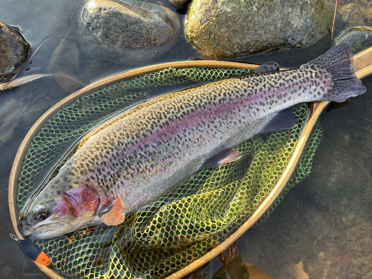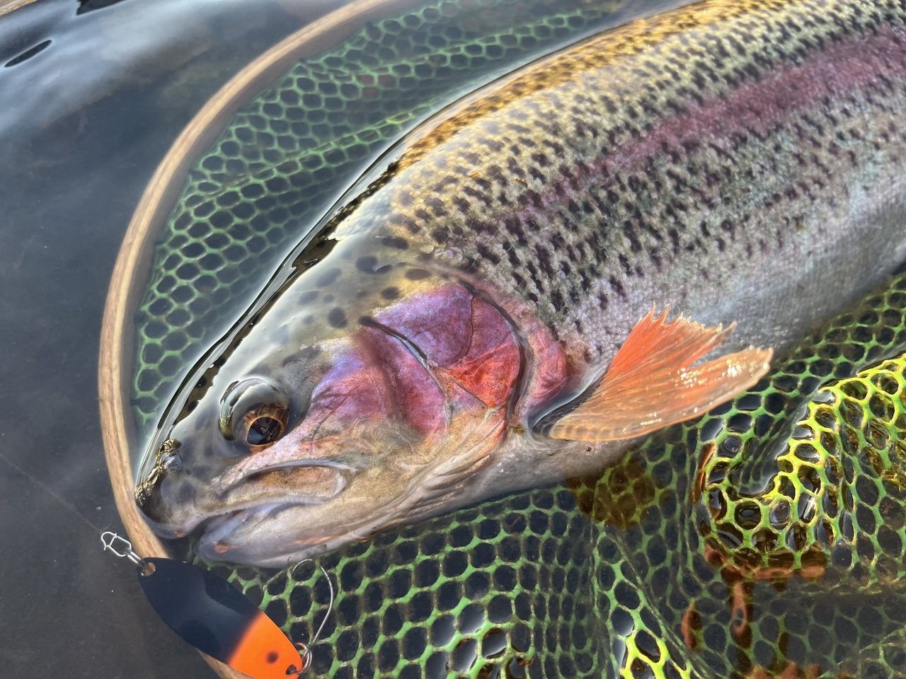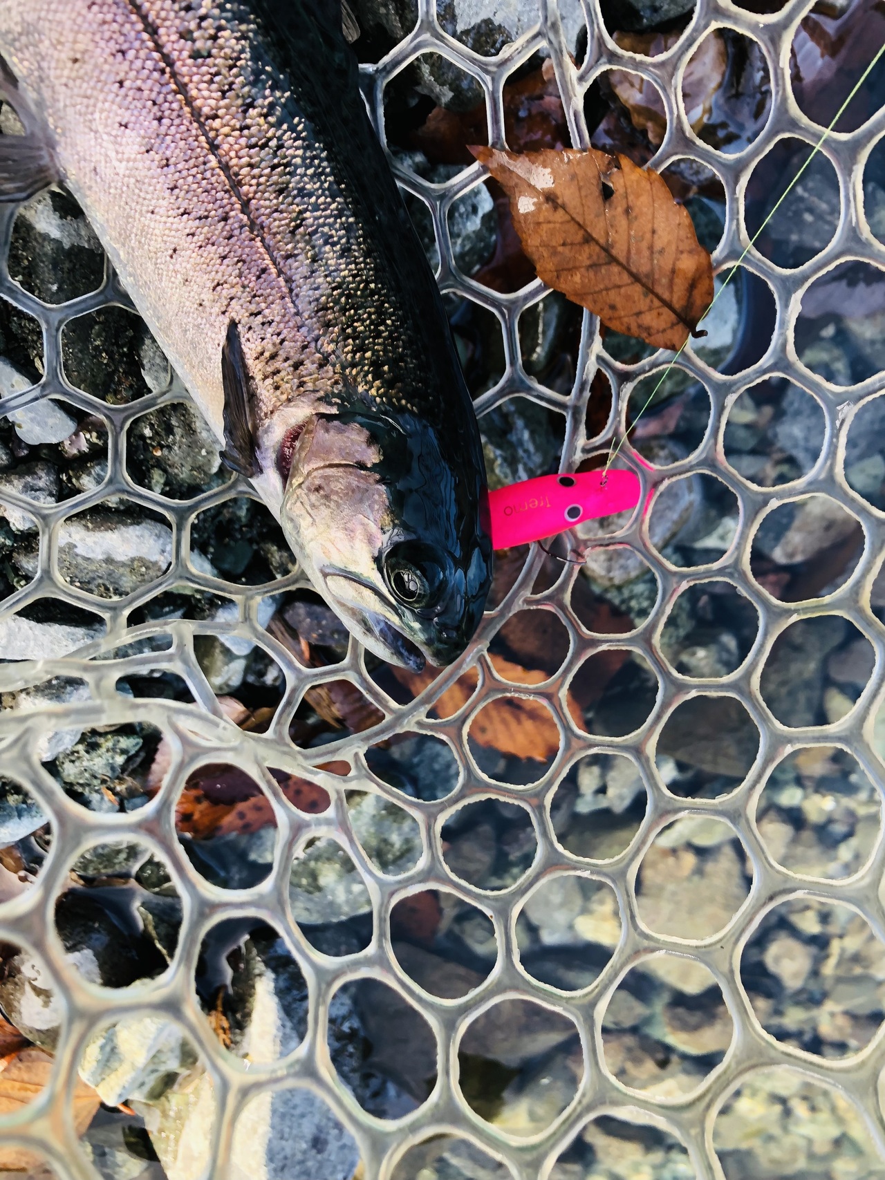 前々日に放流が入っているので、残存が居るかな~なんて思いながら様々なルアーを試しますが反応はありません。