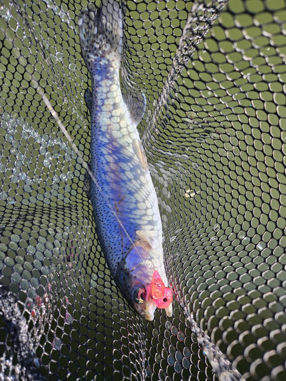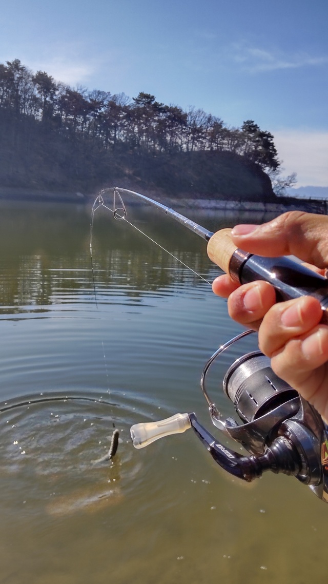 水車側にて釣りをスタートするとベリーズ1.3gで小振りですが2本立て続けにヒット。ピックアップ寸前ぐらいで食ってきました。しかしこの後はアタリはあれど乗らない・・・せっかく掛けてもバラシてしまう悶絶タイムにしばらく突入。