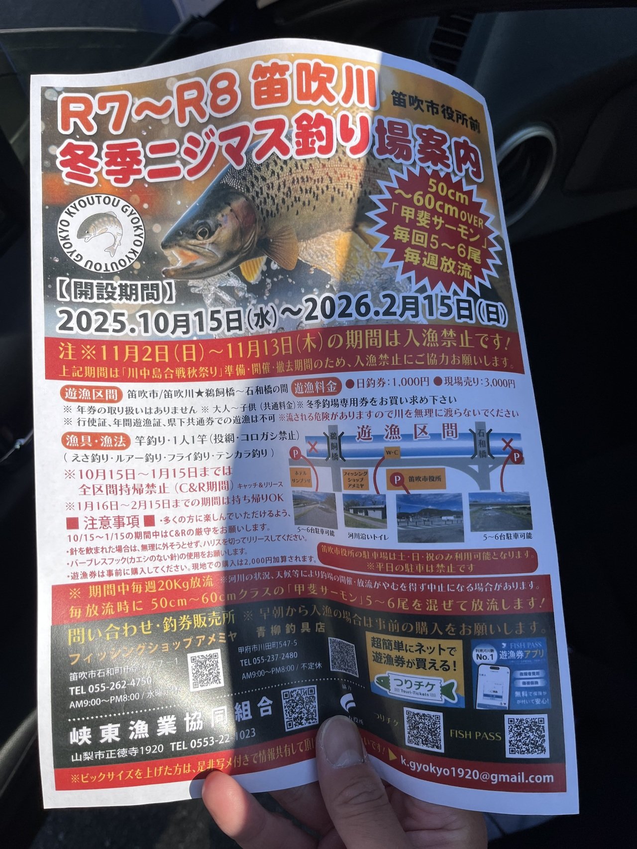 | 釣り場など | 笛吹川冬季ニジマス釣り場 |