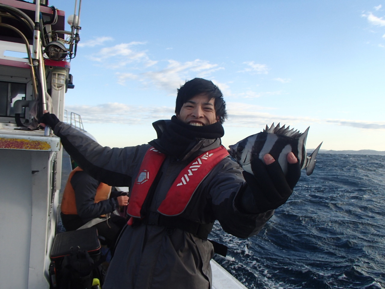 今期1回目の石鯛五目へ行ってきました。船宿は松輪間口港の健洋丸さんです。剣崎の石鯛五目はポイントが狭く、健洋丸、育丸、利一丸の3つの船宿しか出船しておらず、全て仕立て船なので敷居が高い釣りです。港に到着し準備をはじめますが、船が我々以外一切おらず、時化で出船中止したようです。よって狭いポイントも我々の貸し切りとなりました♪定刻の7時に出船すると沖は北風12m/sの爆風、ハリスも空中を舞ってしまい釣り辛いことこの上なし。しかし魚の活性は高く1投目から魚信ありますが、釣れたのはアイゴ…そこからアイゴ地獄が始まりました。その間にもイサキ、カワハギなど色々な魚が釣れ賑やかになってきました。イナダは良い引きを楽しませてくれました。陽が高くなってくると石鯛も顔見せ始め、数が伸ばせました。アジが1匹だけ釣れたので、直ぐに泳がせのタックルをセットし海底へ送り込むと着底する前に青物が食ってきました!良い引きをしながら上がってきたのは5キロのワラサ、泳がせのエサがあればもっと楽しめたのですが、エサが釣れませんでした。同乗の仲間が船酔いでダウンし寒さで低体温も心配だったので12時早上がりし終了となりました。しゃくって誘う五目釣り、攻める釣りなので釣った時の充実感も高くおススメの釣物です、シーズンは12-2月まだまだ楽しめますよ。