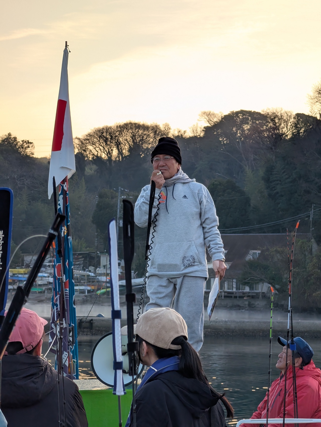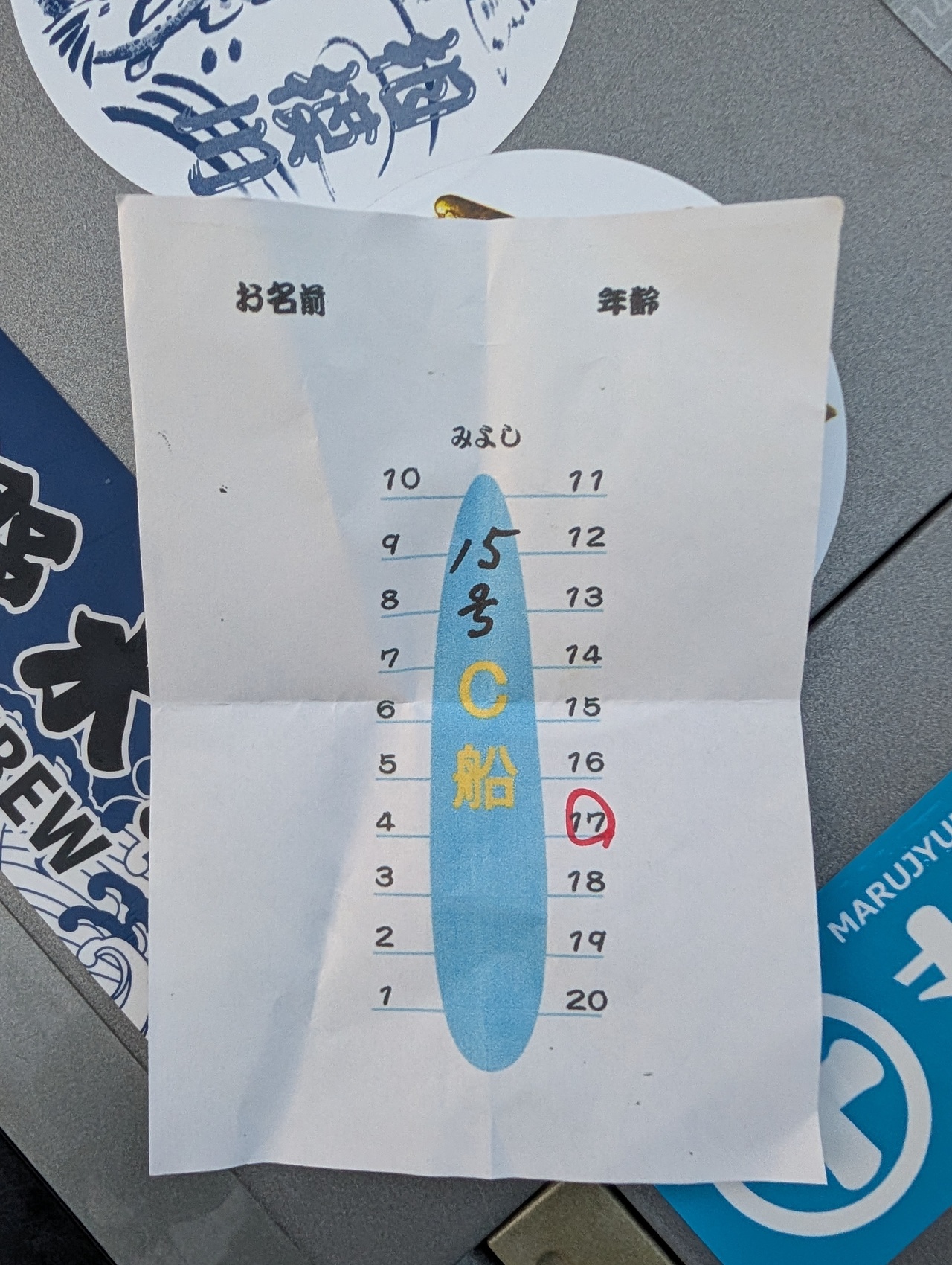 勝利①朝の抽選でゆか船長の船を引き当てる
