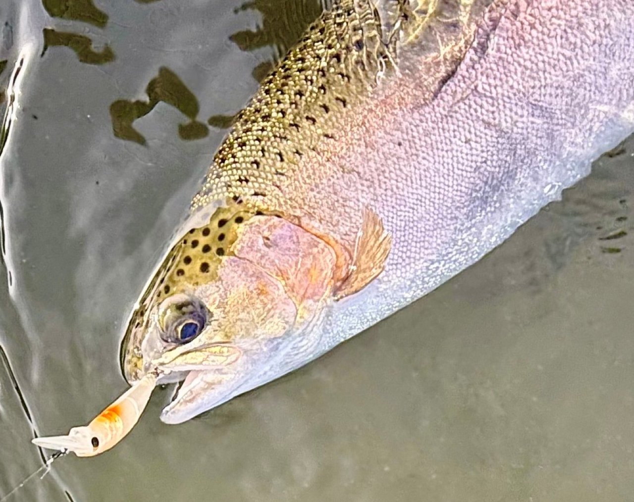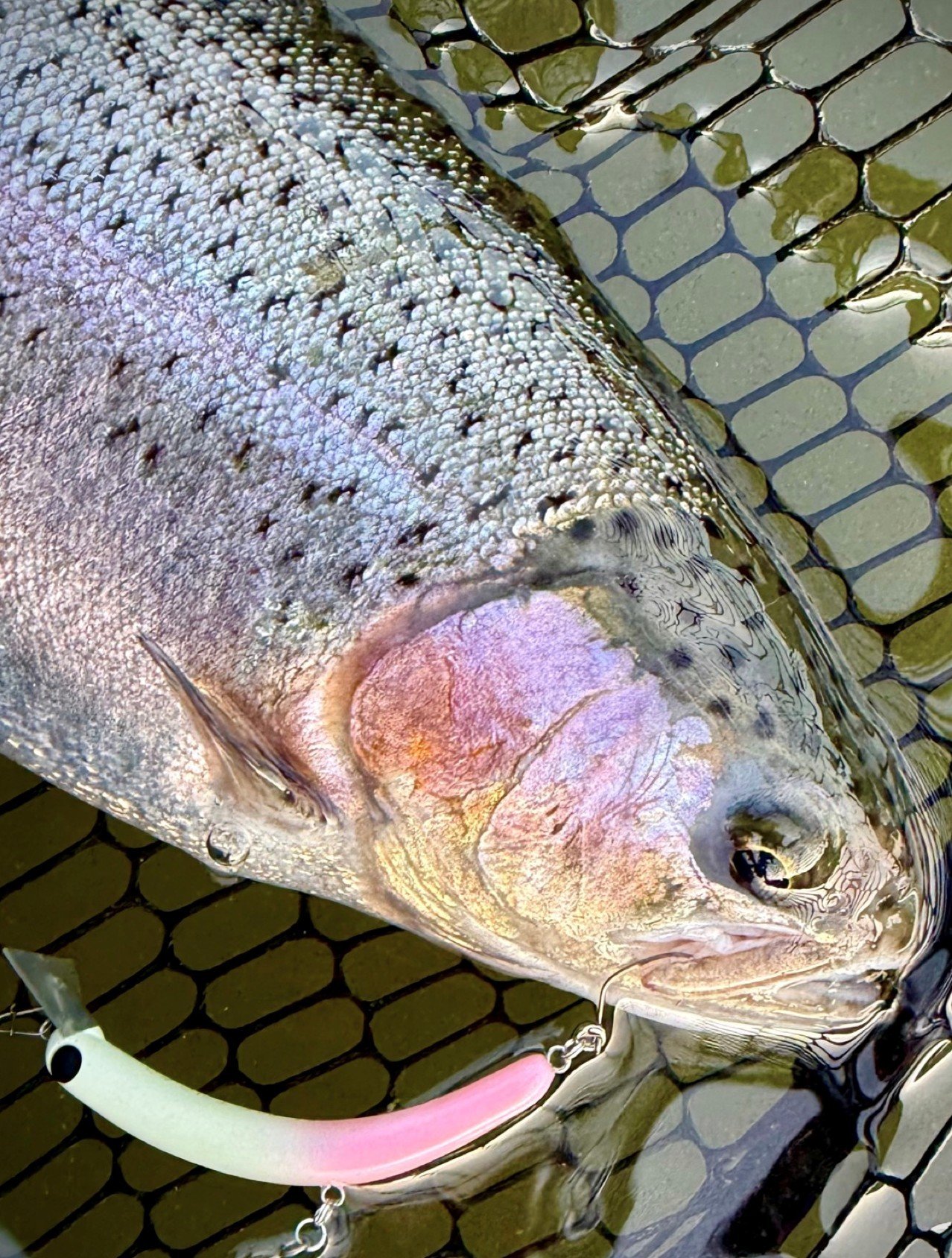 さかさにょろ60FSやグリム51HFMJはじめ、サーヴァントスピア0.7gのゆっくり巻きが反応良かったですが、2匹くらい釣ると同じパターンハマらず色々ローテしながらやったのが良かったようです。