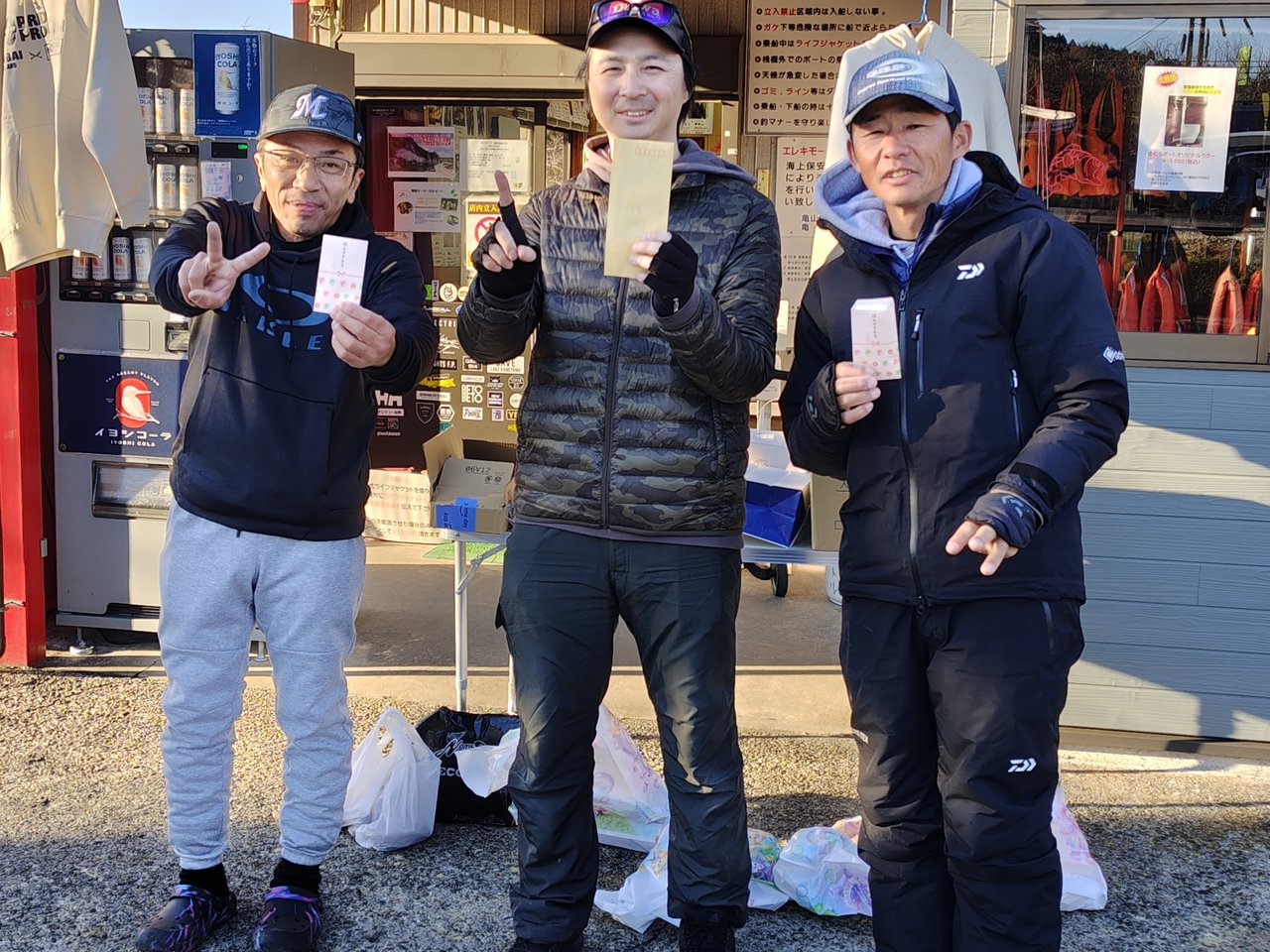昨夜は雪もチラつき朝は極寒。。寒いだけじゃなく凍結してます。見事に船宿のスロープで派手に転びました。尾てい骨を強打しながら手に持っていた竿2本は守りました!今日イチの頑張りです!
