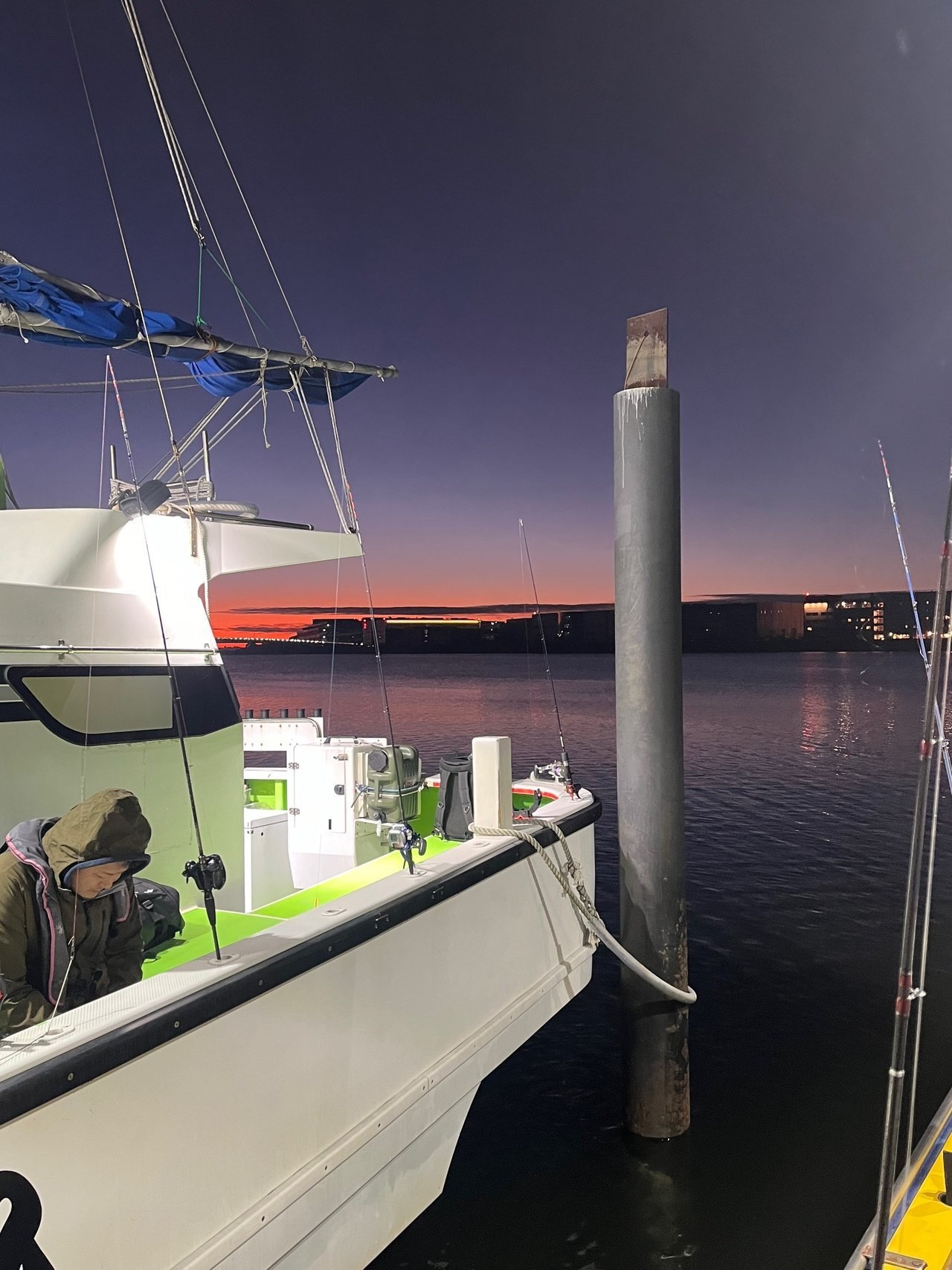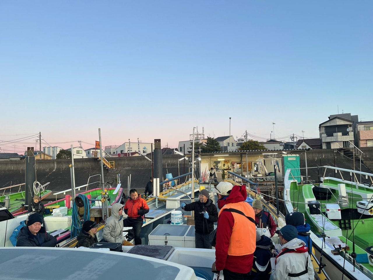 当日は前の日の雪のせいで船宿のタラップや船が凍結…
