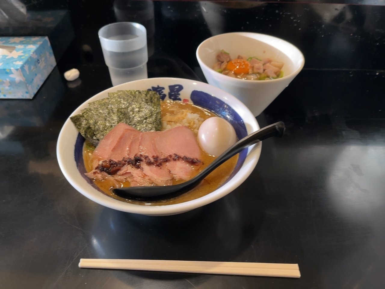 煮干し系のラーメンだったのですが、ここでもニンニクラーメンをチョイス。