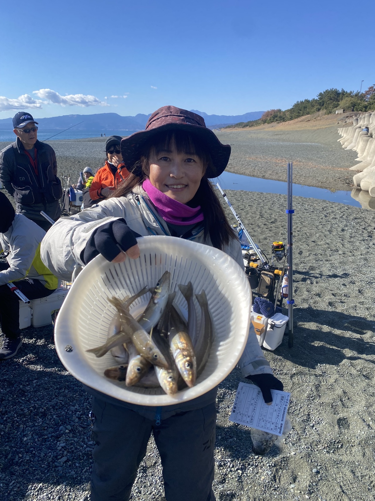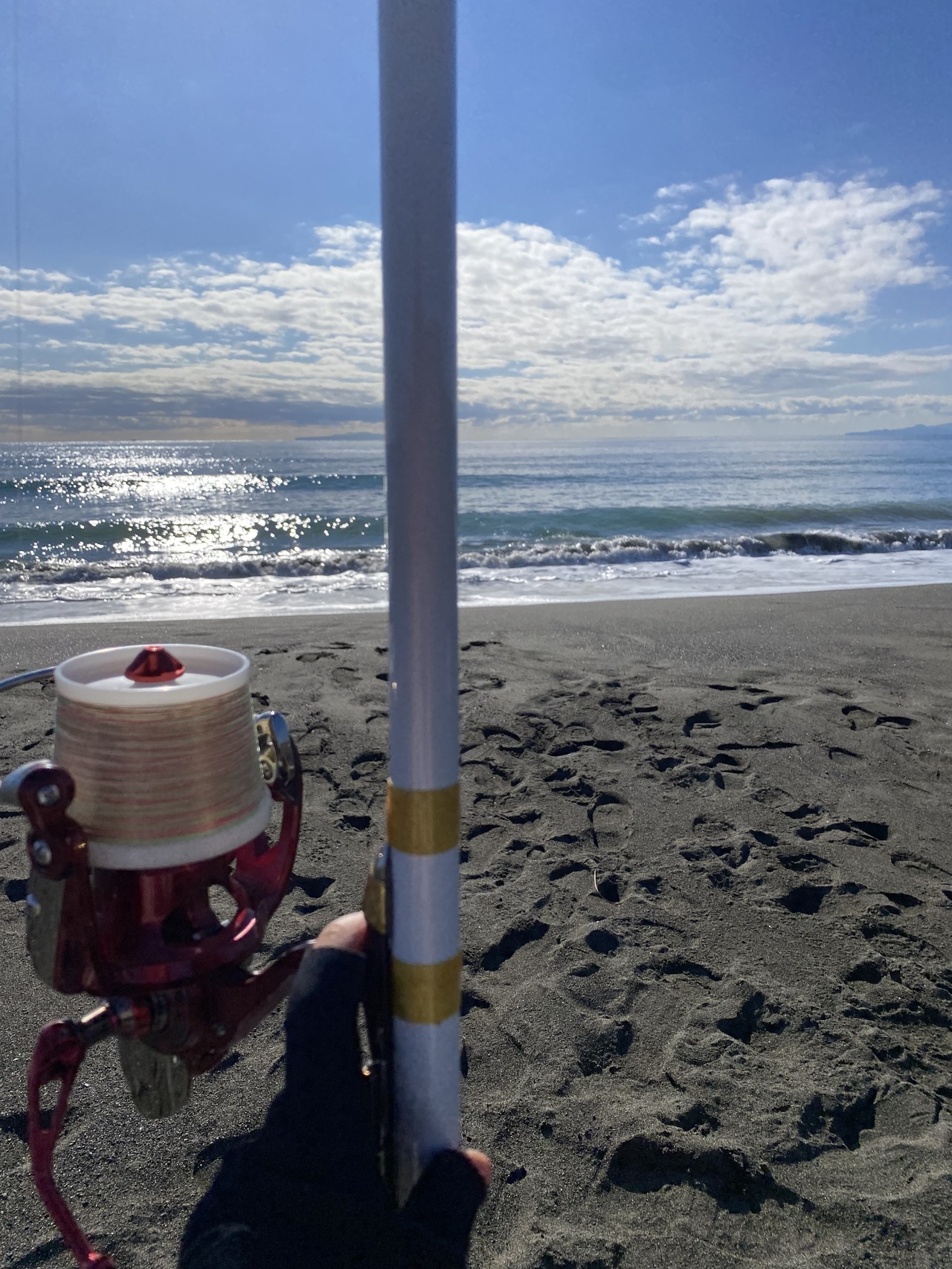 投げ釣りに行ってきました!日本サーフキャスティング連盟の新春初釣り大会に参戦です♪毎年参加させていただいてる初釣り大会ですが、高い確率でボウズをくらいます。しかし今年は前日に魚の顔が見れた場所があったそうなので、そこを目指している人達に着いて行きました。30分ほど歩いた先は大磯北浜海岸!
