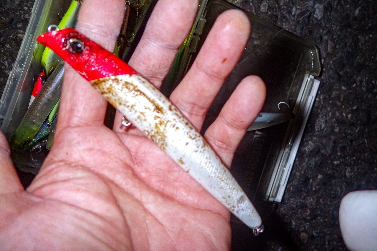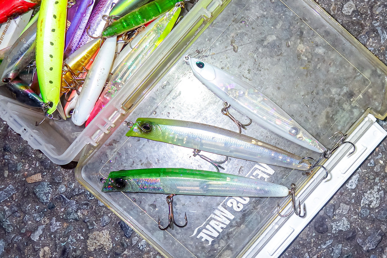 はじめは魚が遅く、ノア1.5gを沖まで入れて姿勢を立てつつゆっくり巻きでポツポツ拾えましたが見失い、ノア1.8gに速度を上げてすこし拾えるも追いきれず終了。