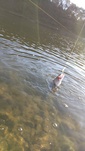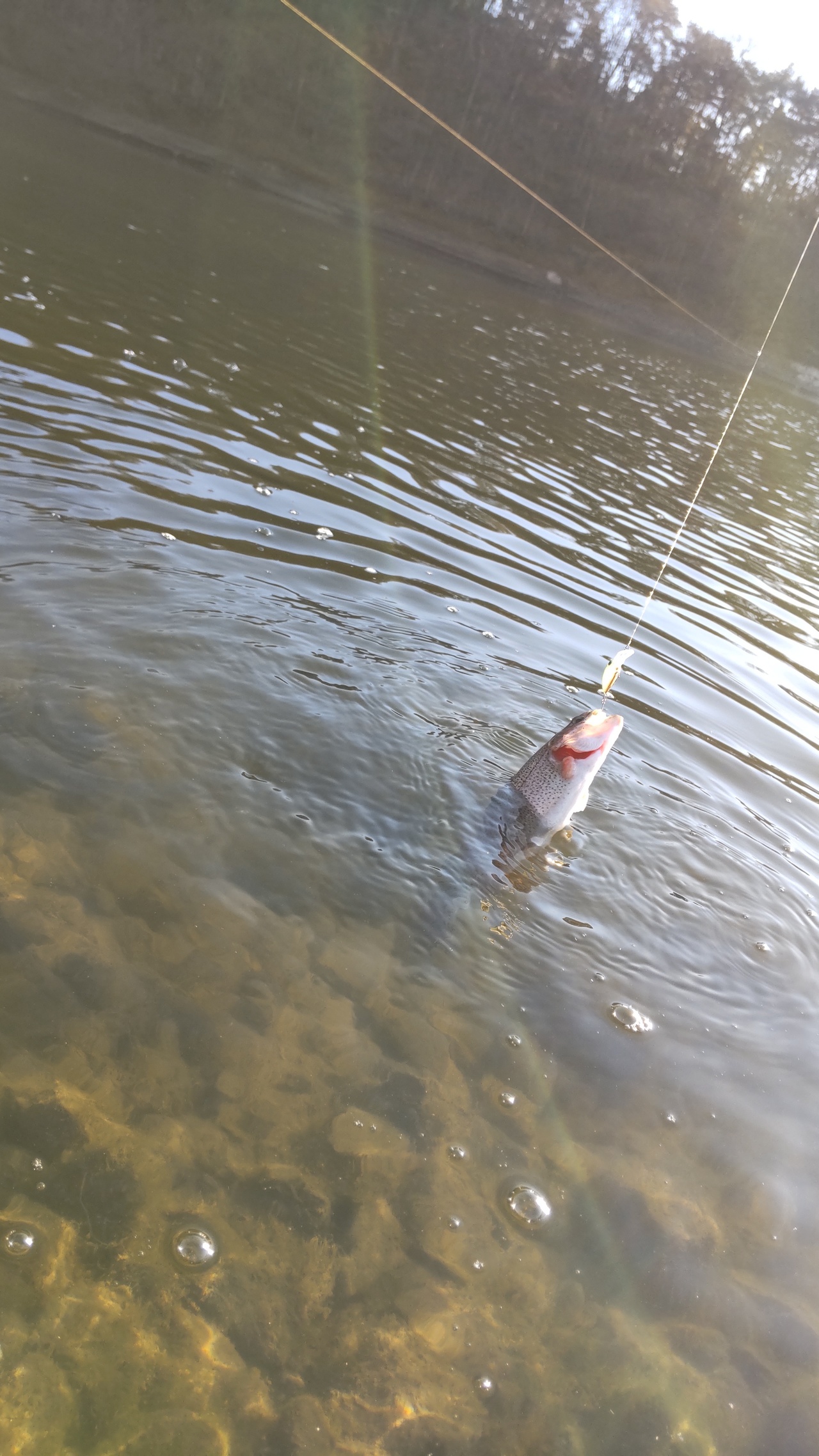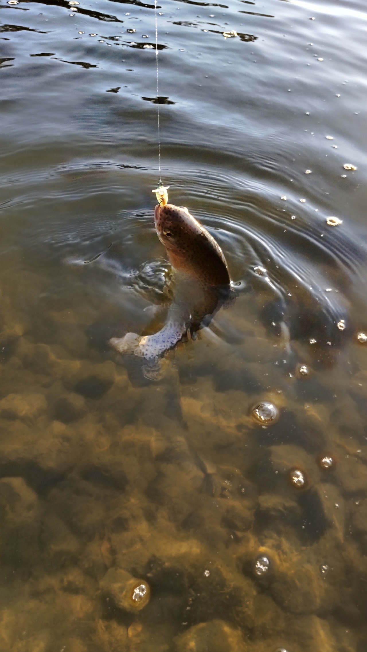 朝方に冷たい雨が降るコンディション。エントリーすると昨日見られたライズは無く、静かな水面・・・ルアーをゆっくりと通すと幸先良くヒット!しかし後が続かず・・・まだまだこれからに期待です!