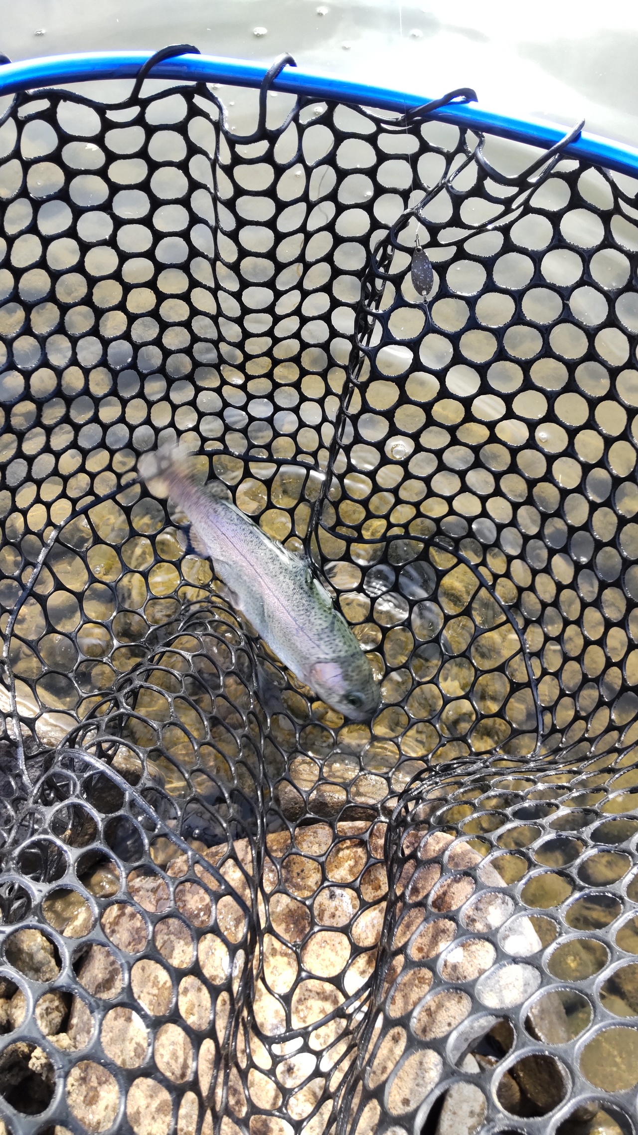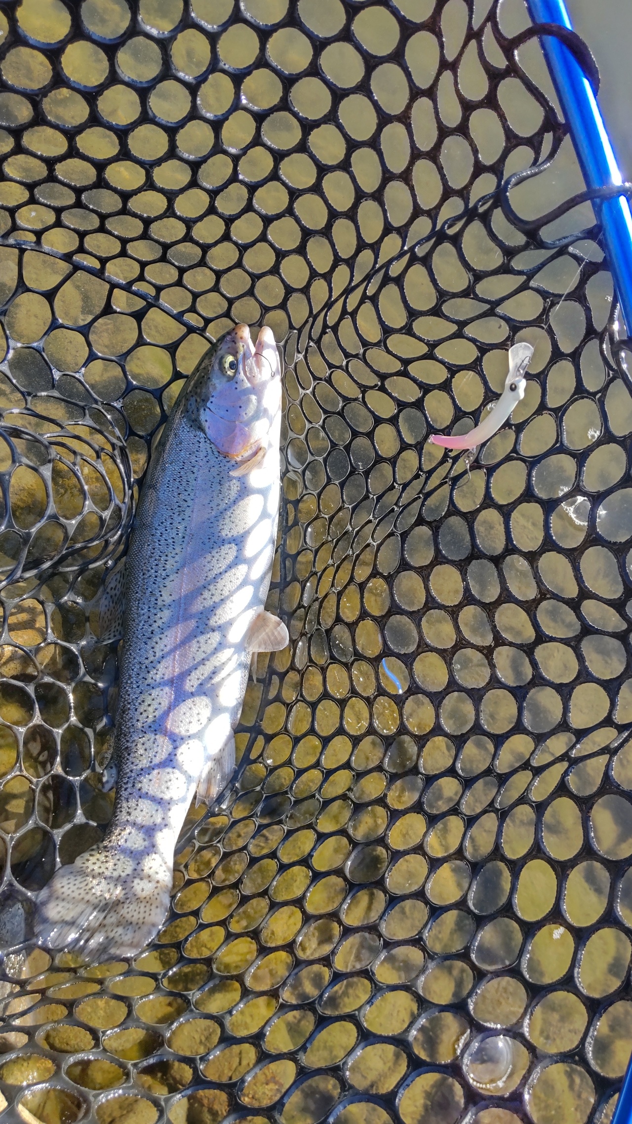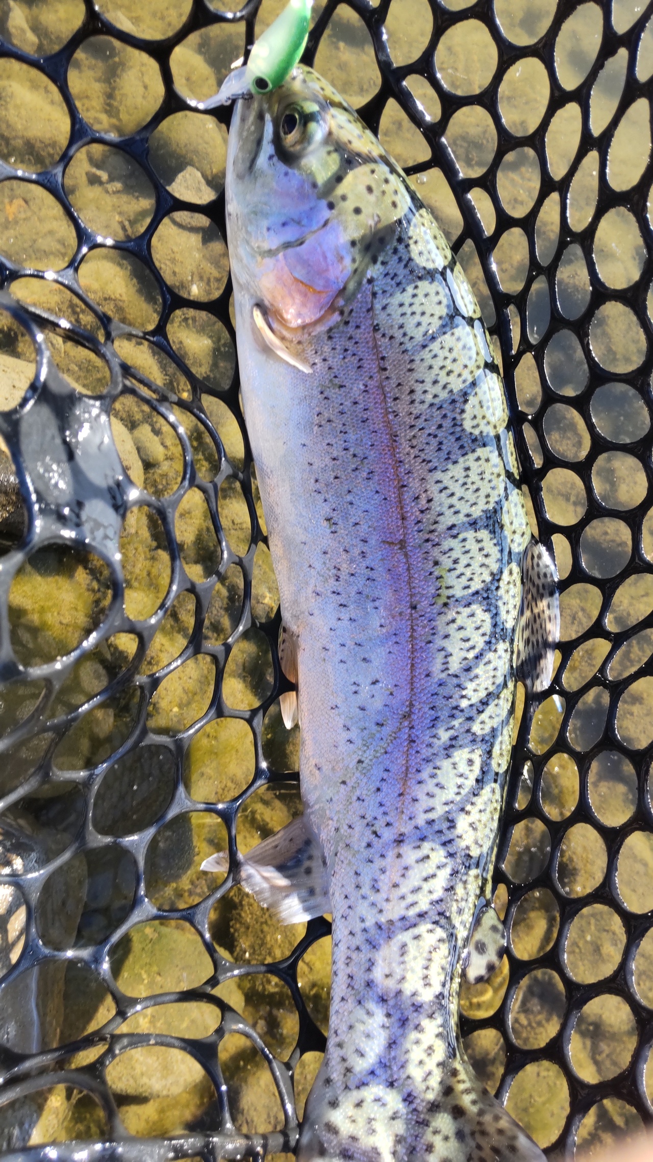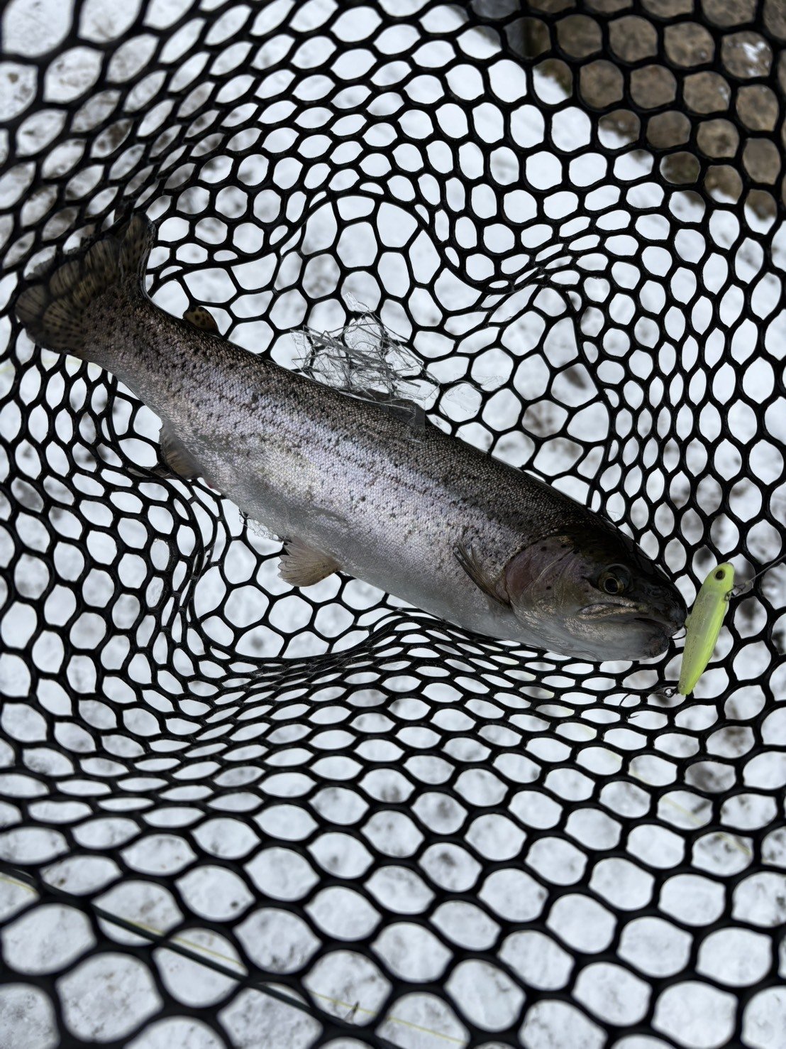 今回は川場キングダムフィッシング様へお邪魔いたしました。11時に到着し駐車場が空いてる?池のお客様が少ない?と思っていると池が凍ってました!!それでも入れる所があったので券を購入です。聞くと朝-9℃まで冷え込み池が凍り、だいぶとけてきたとの事。それでも1/3?半分近く?凍っていました。投げられる場所が限られている中釣りをしましたが反応が薄かったです。エサ巻きで魚の見ていましたがの~んびりで。エサを巻いてくれたお兄さんがゆ~っくり落としながらちょっとアクションをいれて誘ってみて下さい。と教えてくれました。それでも難しくボトム等でなんとかキャッチし終了となりました。高速を降りてからは道路が凍っている場所もあったのでお気をつけください。