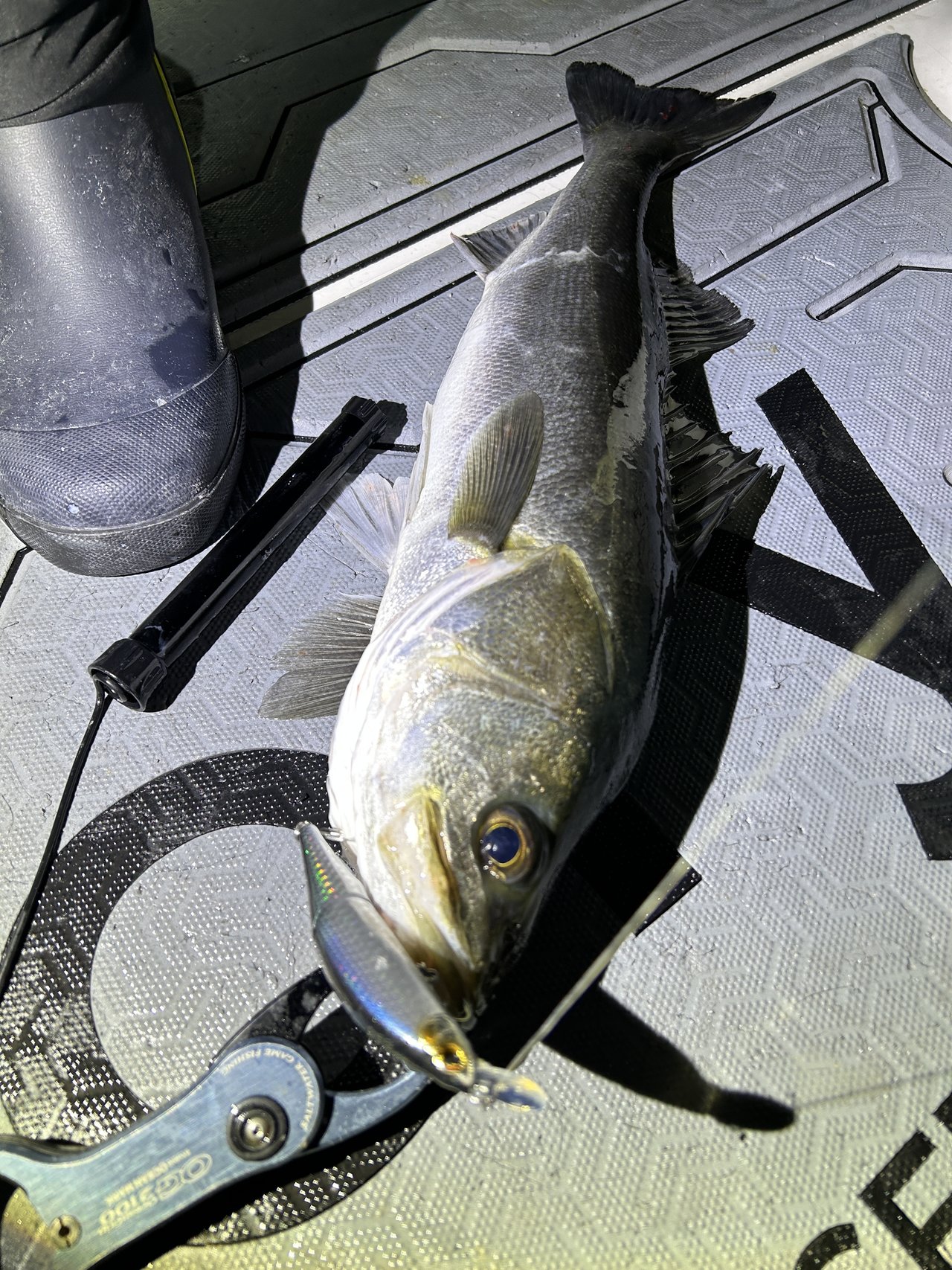 低水温で魚のやる気が低いそう。ただ、上がってくる個体のほとんどはベイトをもりもり食ってそうなボディ笑