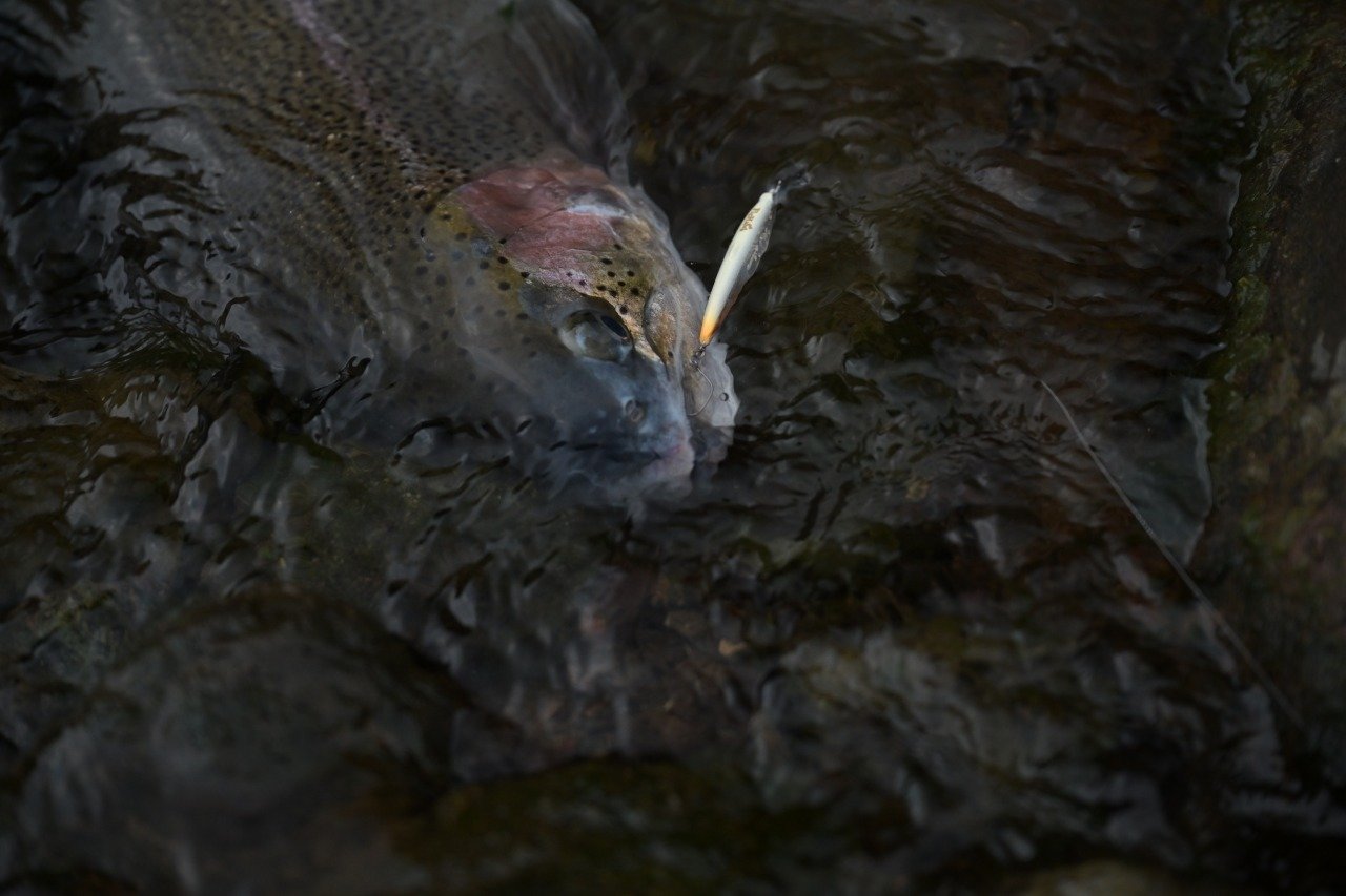 寒波襲来により勢いを増す寒さ・・・防寒対策を整え、いざ河川へ!約束の時間となると、前日と同じように眼下に広がる光景。魚のテンションに合わせながらルアーを通すと、波紋と共に手元に伝わる重み!エサをよく食べた、ポッコリお腹の魚たちが釣れてくれました!