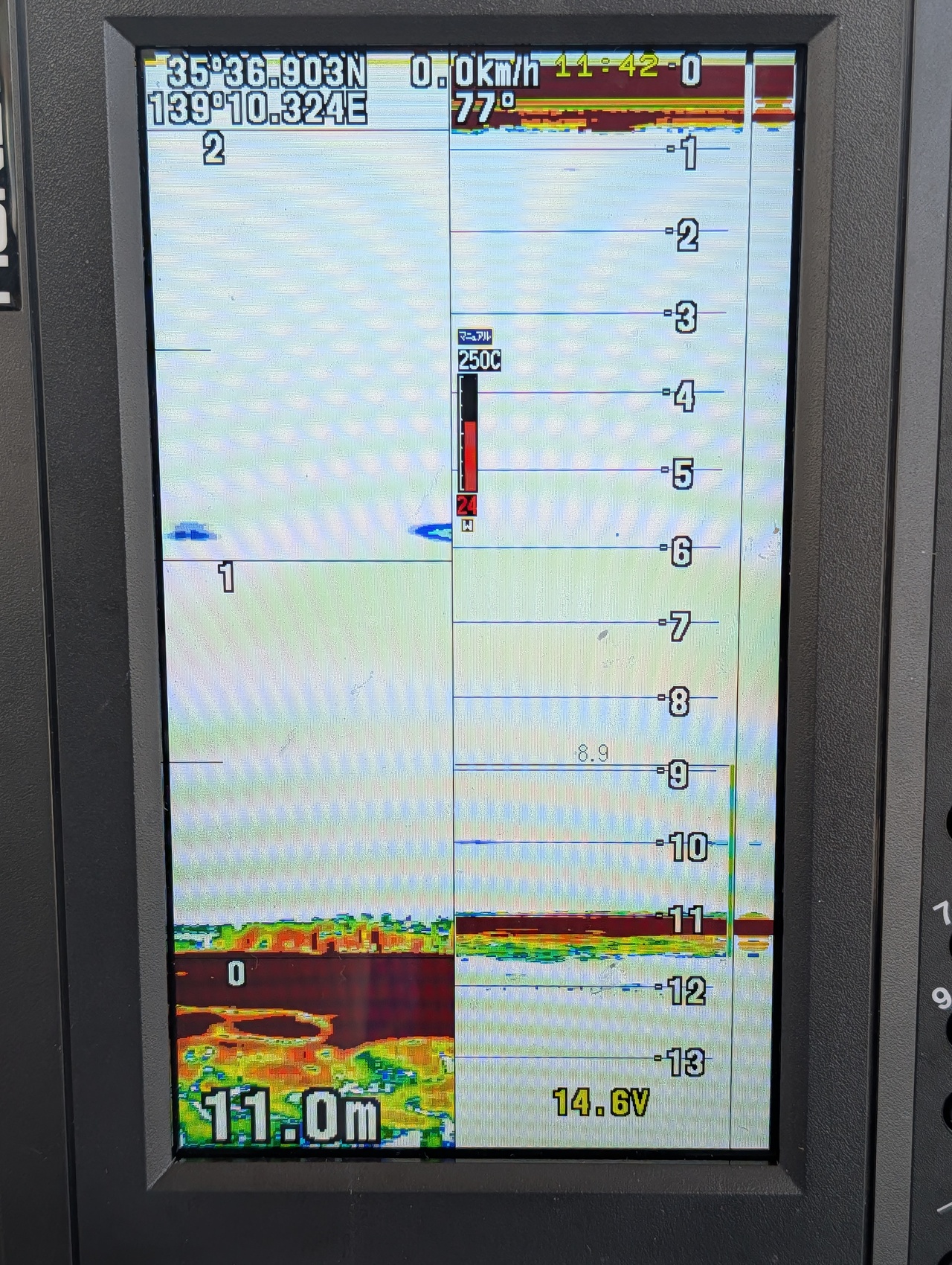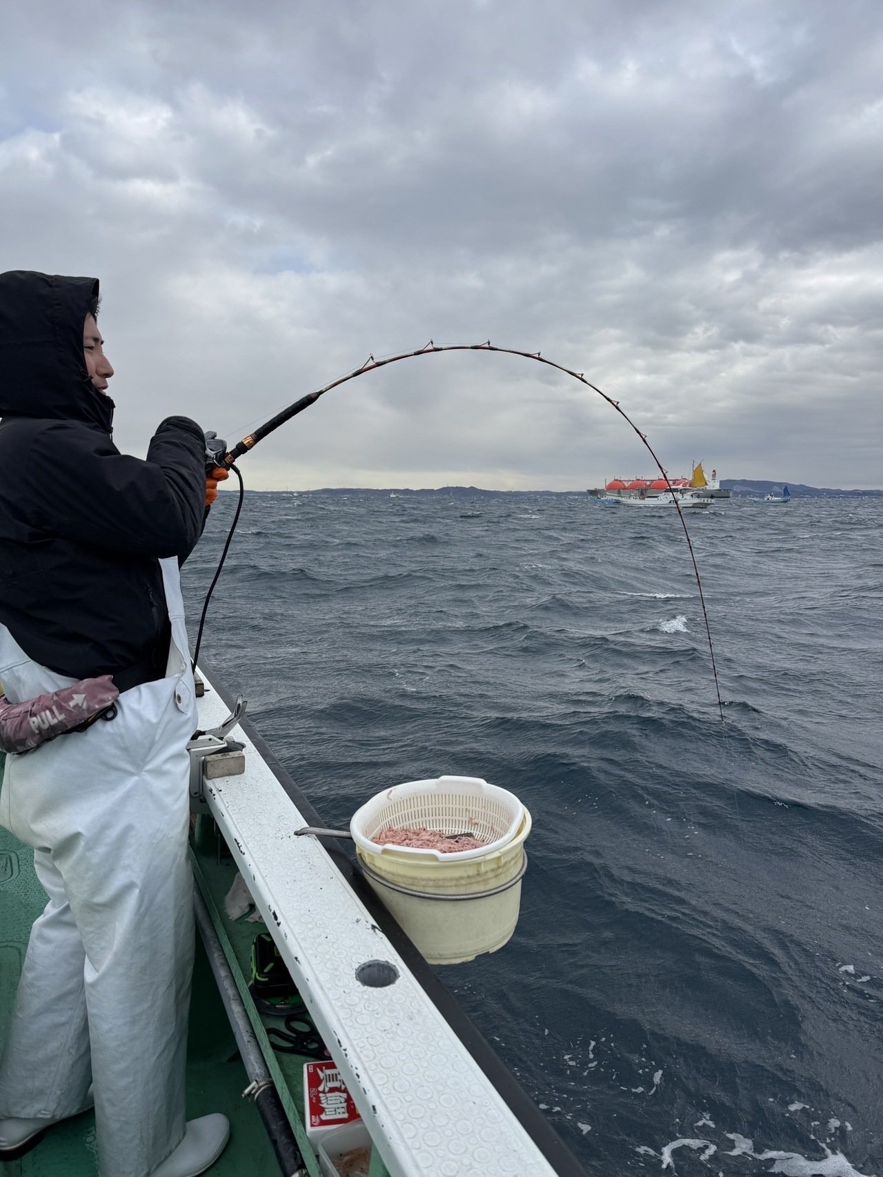 出船して群れ探しも苦戦しているのか、ようやく止まったポイントで釣り開始。
