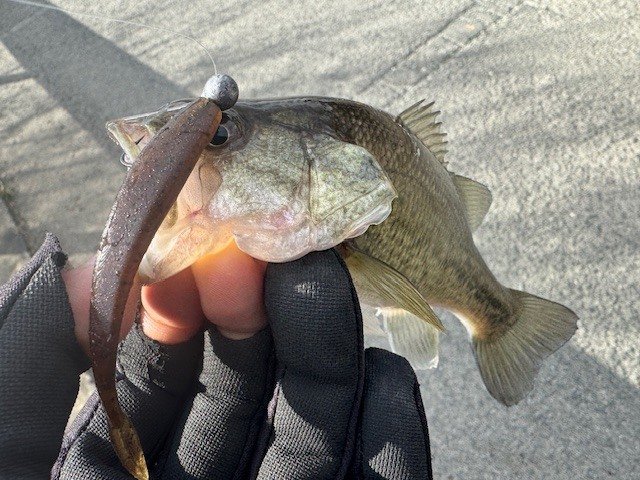 最低気温が氷点下を下回る寒波が続く中の晴天。厳しい状況を予想していましたが、ダウンショットを中心にミドスト、ノーシンカーズル引きなどで1日楽しく遊べました。定期的に放流が入る為、まだまだヤル気のある個体は多そうですが、ショートバイトや浅掛かりも多く。ロッド、ライン、針といったタックルバランスは気にした方が良さそうです。