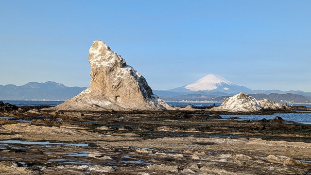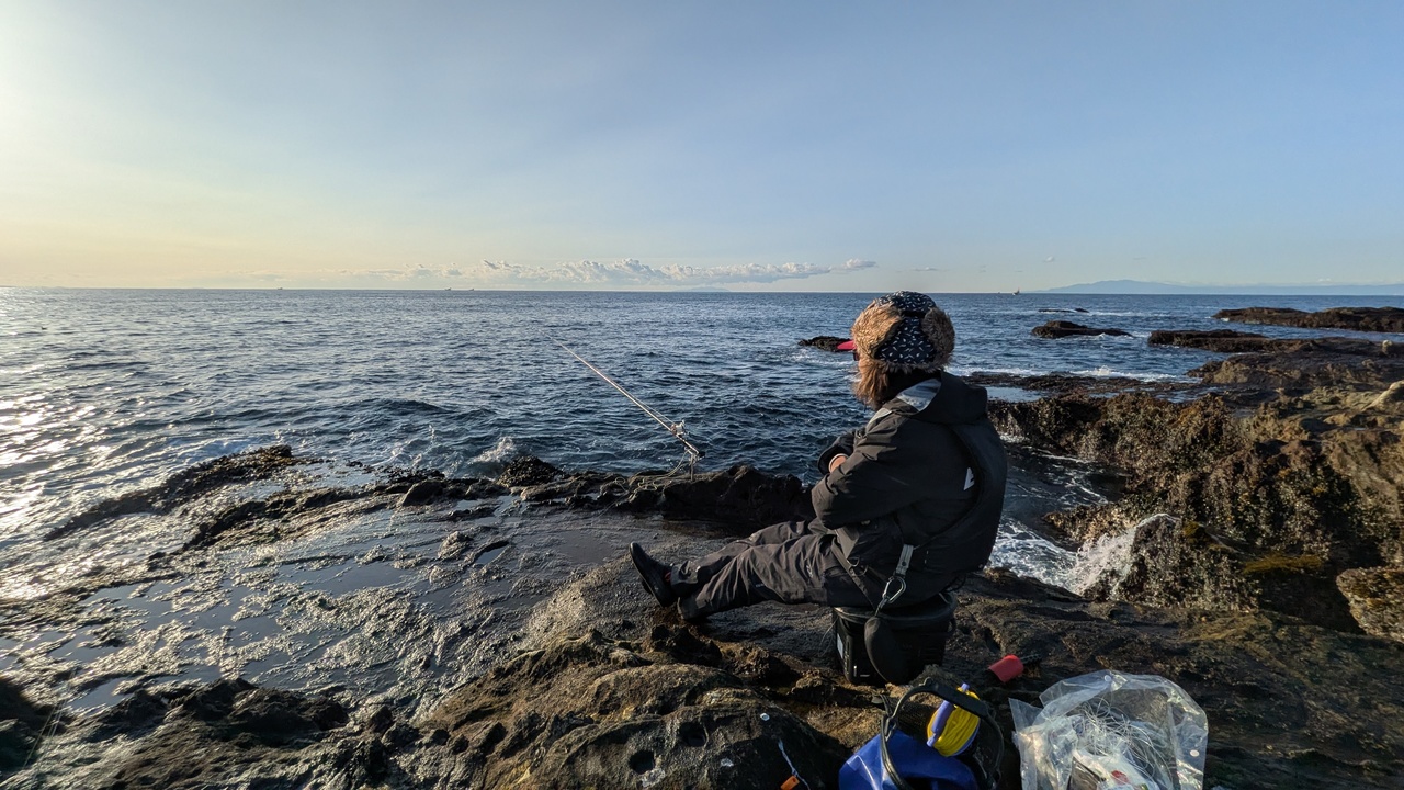 冬の澄んだ空気に烏帽子岩越しの富士山。最高の景色が見れたから釣果は?ま、いっか!また行こ。おわり。