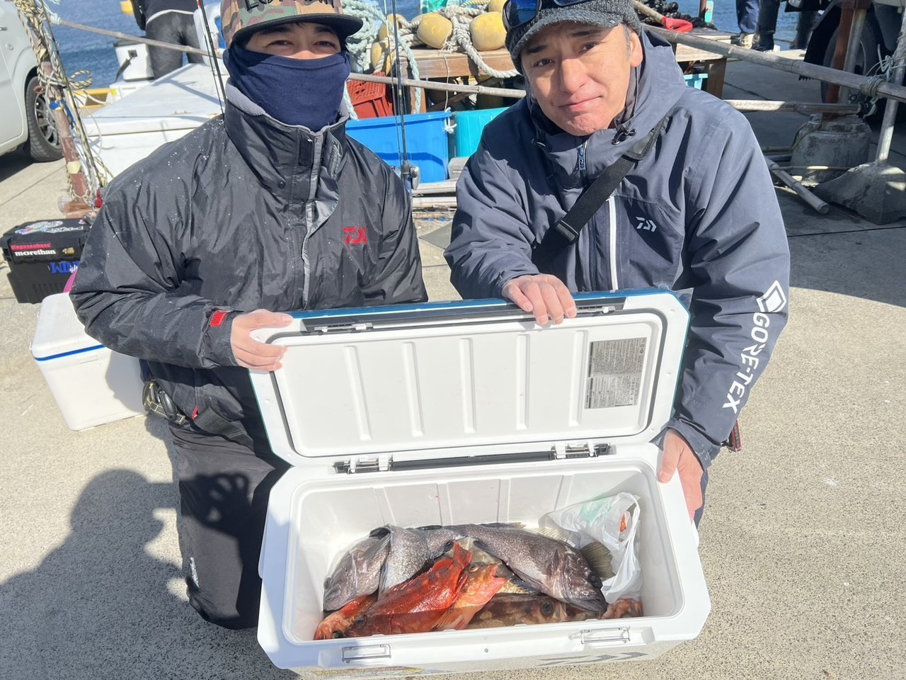 水深は50mラインから深い所で70m前後。乗り合わせの方々含めほぼ全員が電動リール装着。海上は凪で日が差して陸よりあたたかく釣りは楽しめましたが潮の流れが非常に速く、釣りづらい1日でした。