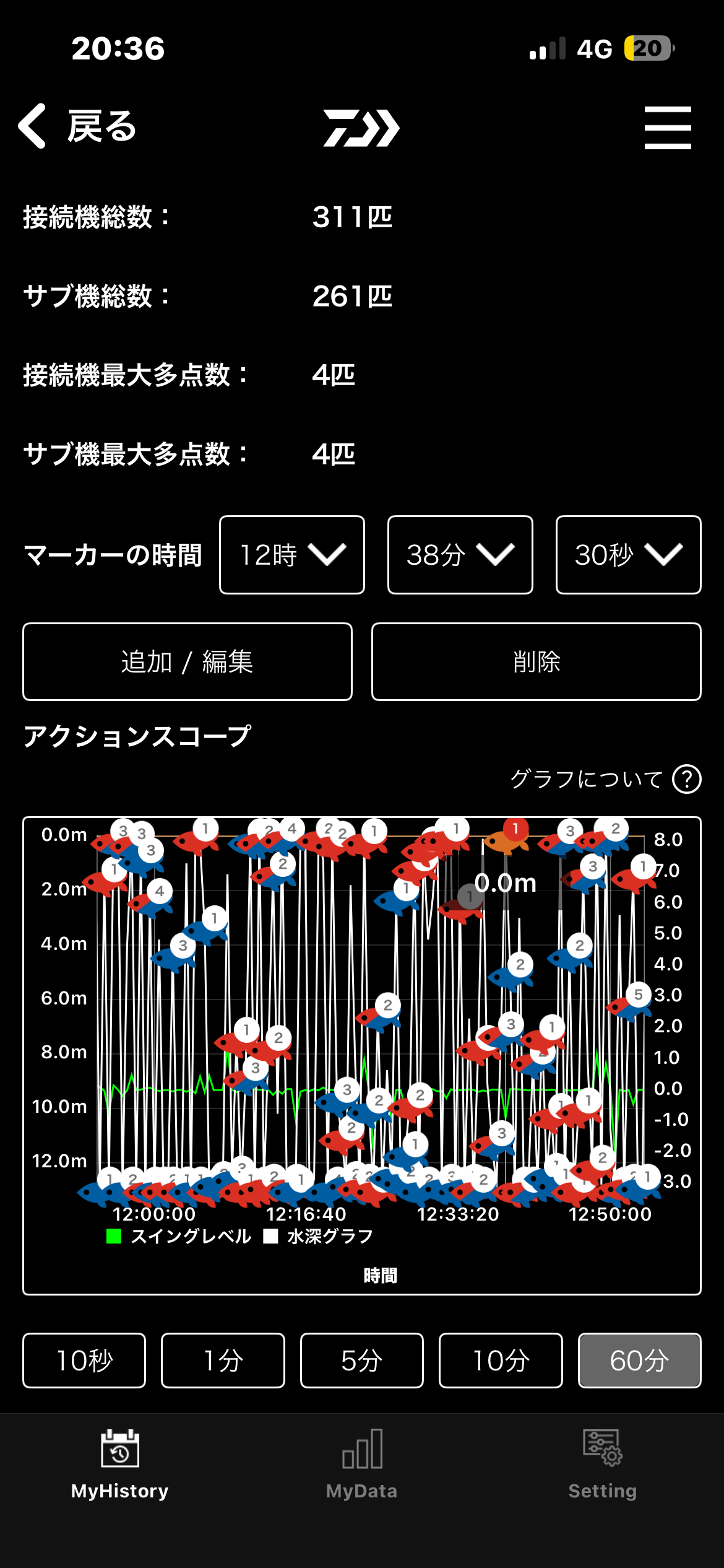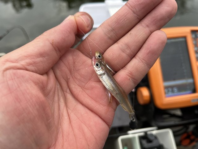 約1ヶ月ぶりに【北山湖】のワカサギ釣りを楽しんで来ました。そろそろ産卵前の「爆」になる時期!春先定番の北山湖本湖の【69番小関ワンド】通称「階段下」に朝イチから入りワンド奥の水深12~13mでボートアンカーを降ろしスタート。魚探には湖底から5m程浮いた群れが映っていますが釣れずに底ベタに映っているワカサギは素直に喰ってくれる状況でした。始めの1時間は時速100匹ペースで釣れ徐々に食い気が上がりお昼頃には時速140匹とペースが良くなりましたので久しぶりに1000匹(10束)に行けるかと思われましたが予報より早く天候が崩れ雨模様に・・・手先はふやけるしエサ箱のサシ虫が泳ぎ出しで脱走しまくるのでこの日は早めに終了しました。あと9匹釣ってれば700匹だったのに残念・・・自宅に帰宅後はダイワ「ワカサギコネクテッドシステム」機能で仕掛けの違い(針の違い)や時速〇〇匹などを振り返り出来るのも楽しいですょ!