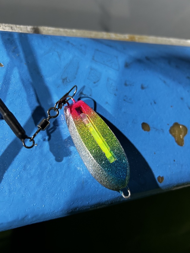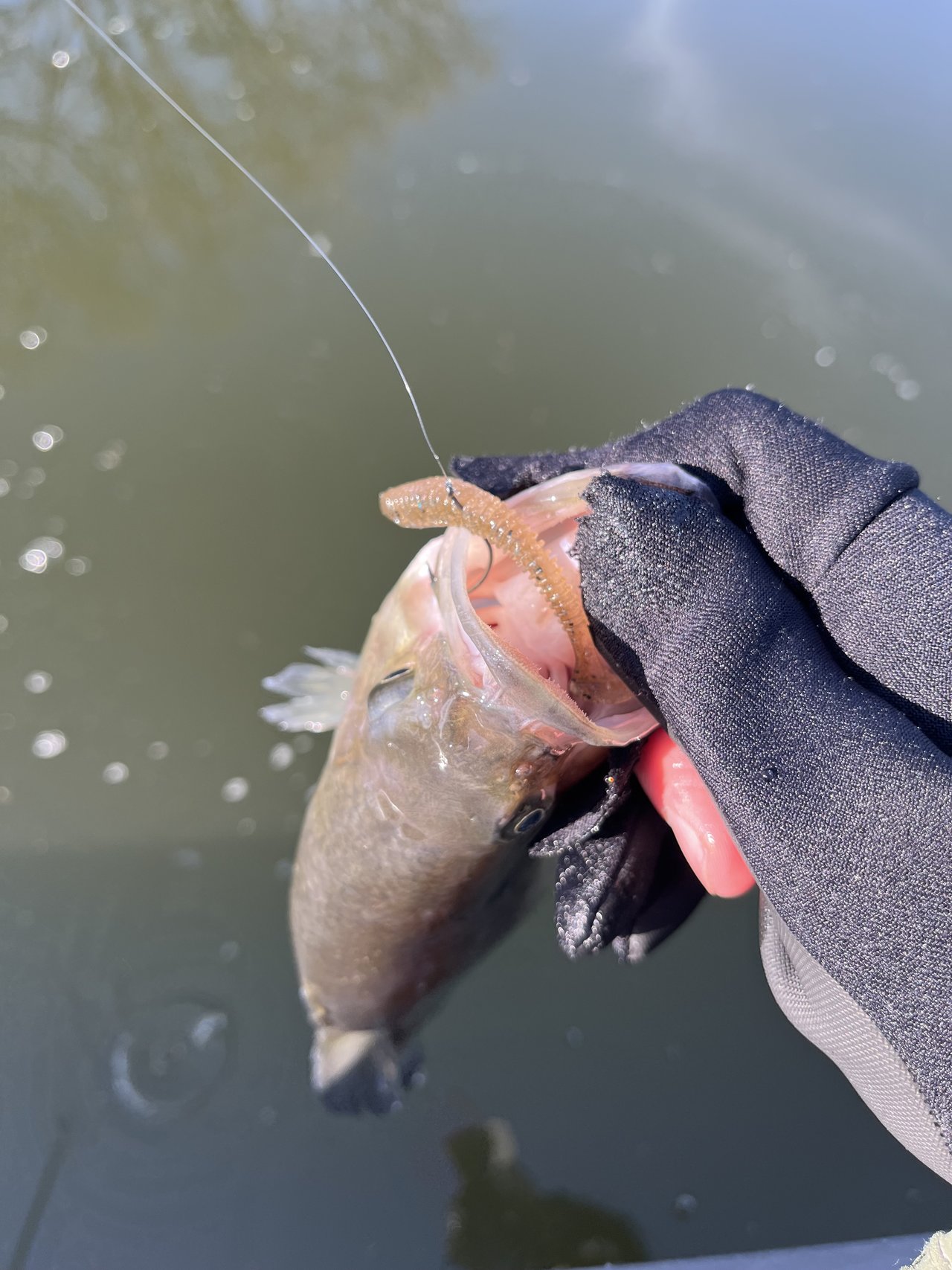 その後、魚の遊泳層に合わせてゆ~っくり左右に水平移動させるとモソモソアタリが出ることに気づき、続けているとヒット!惜しくもネットイン直前でバラしてしまうも、同じやり方でもう1匹追加して満足!