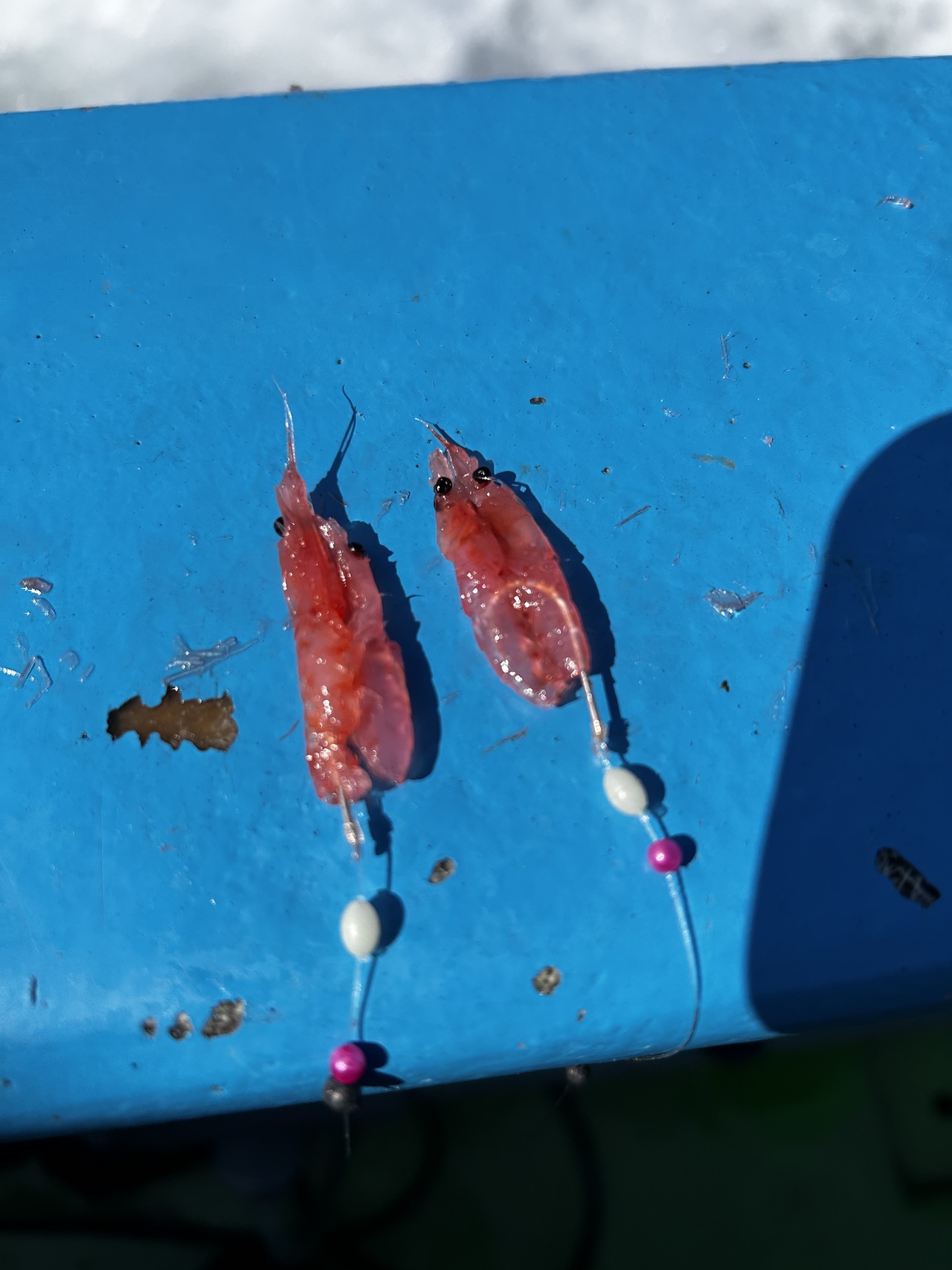 餌のオキアミを2本真っ直ぐ腹合わせにしたらアマダイの当たりが増えました。