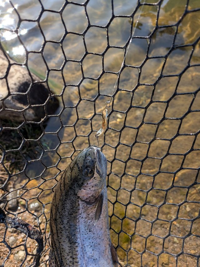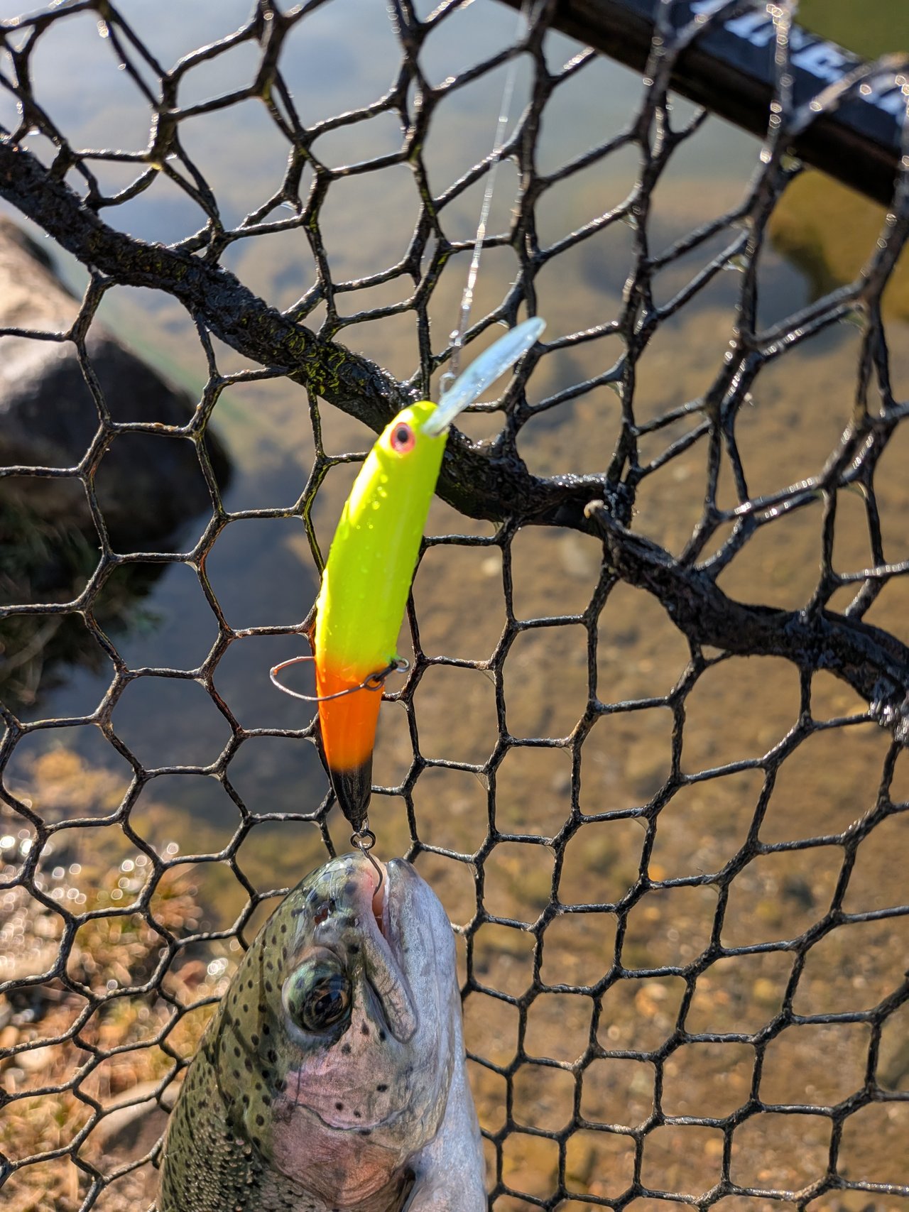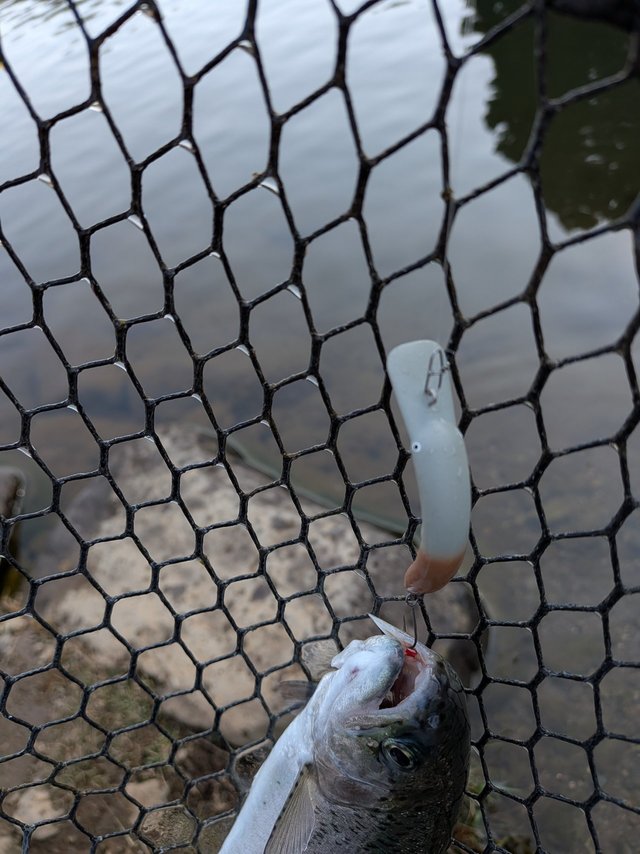 ダムの放水での濁りのおかげで常にスプーンが効き、馴染みの遅い放流魚を追える展開