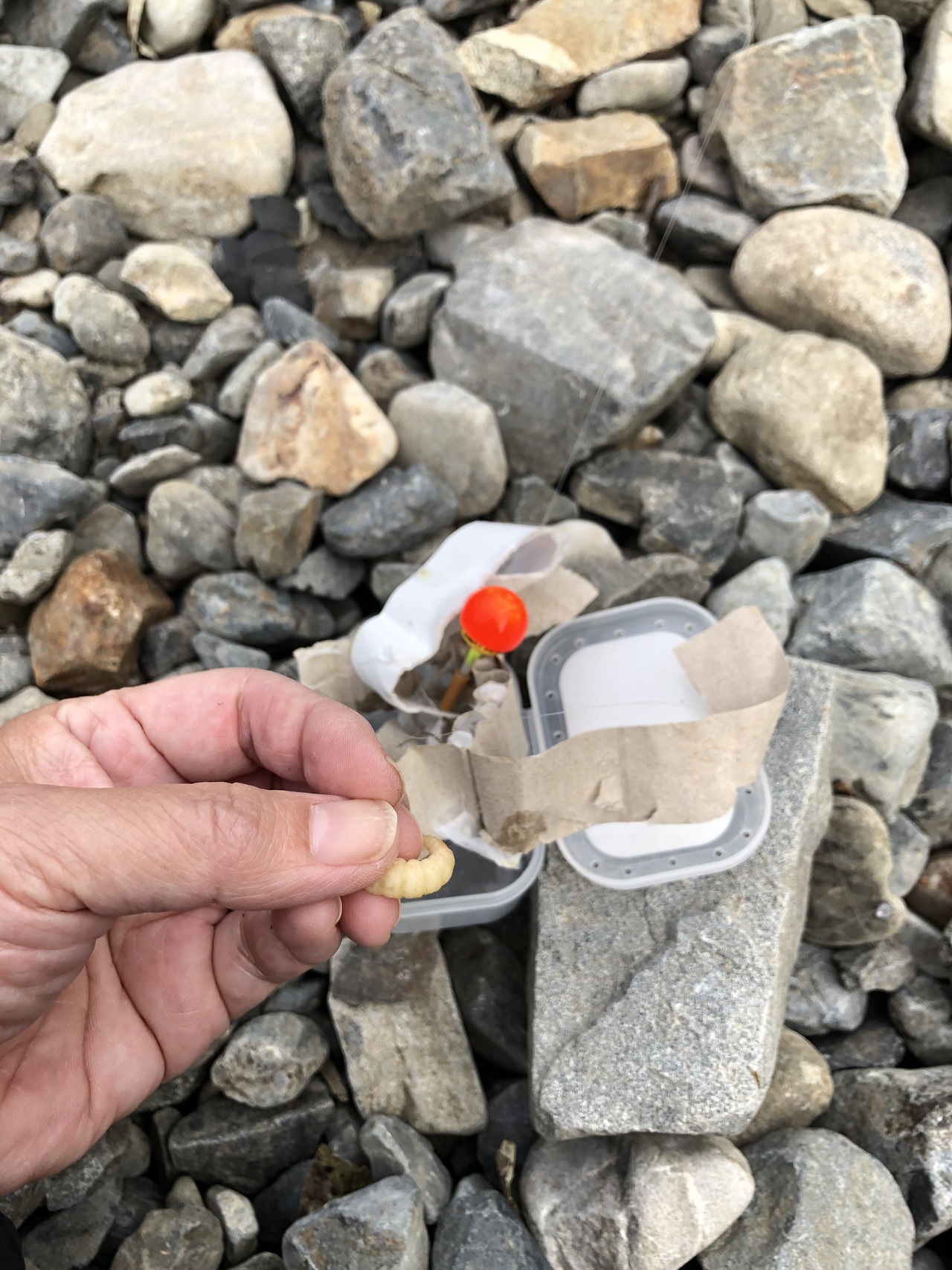 仕掛けにぶどう虫をつけ流してみると意外と簡単に掛かって楽しいです