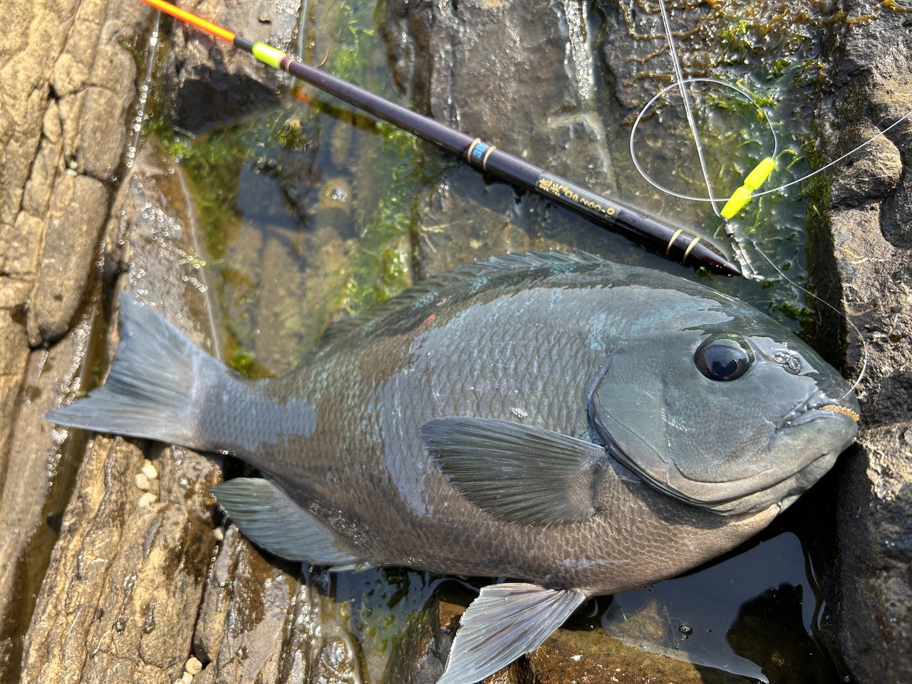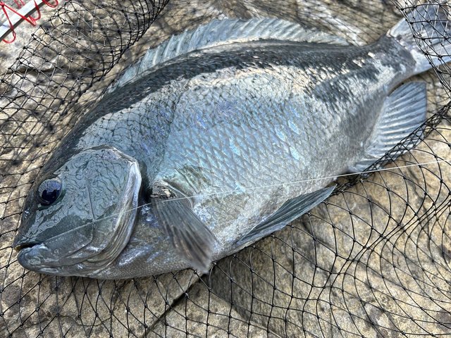 朝マヅメに45㎝の口太が釣れその後、沈黙が続きましたが