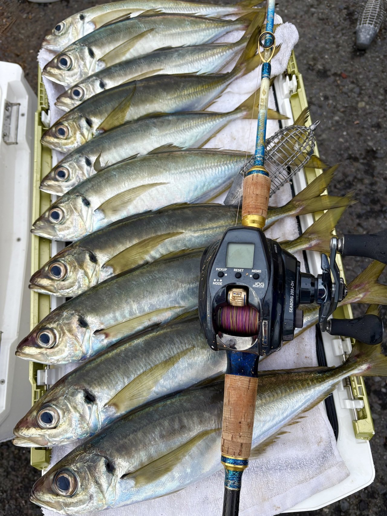満タン釣り上げていました。コマセも付け餌もボイルの反応が良かったようです