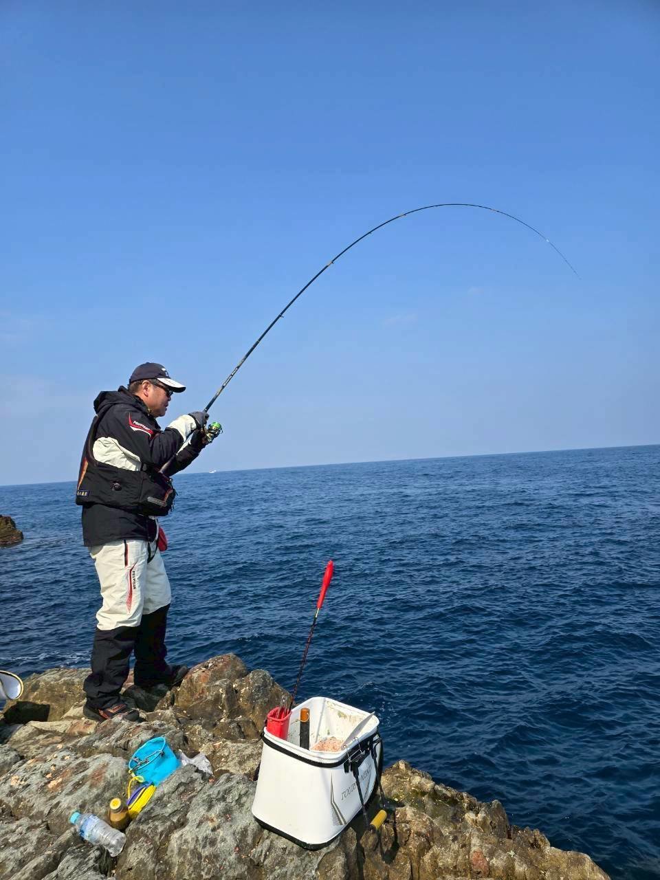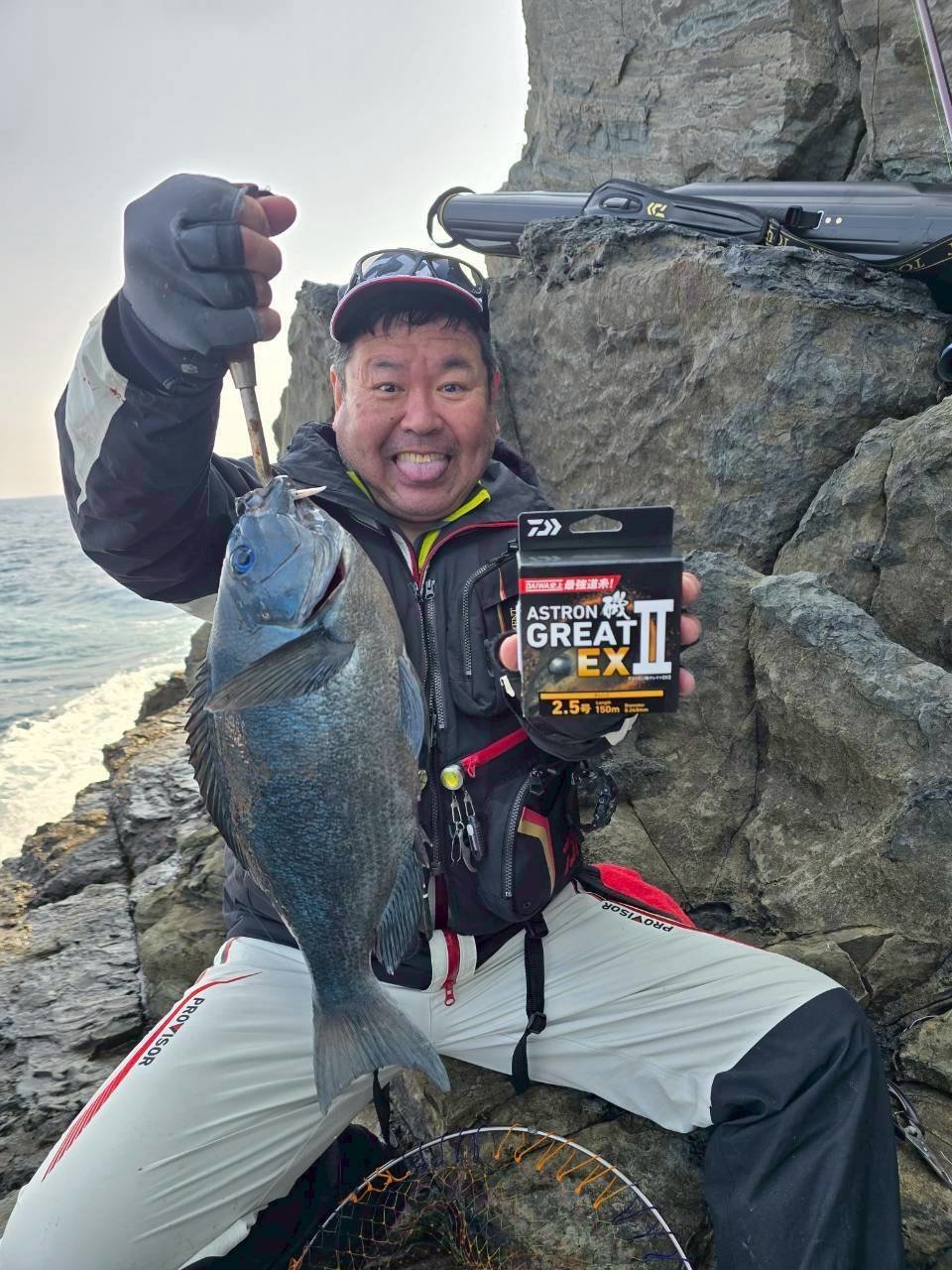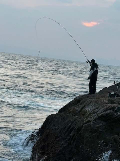 同行の山中は尾長狙いの遠投で40オーバーをクーラー
