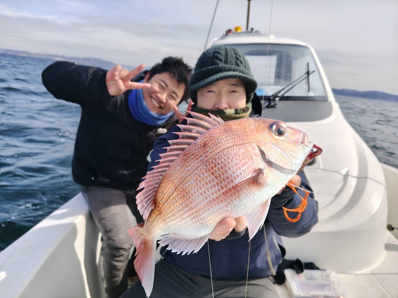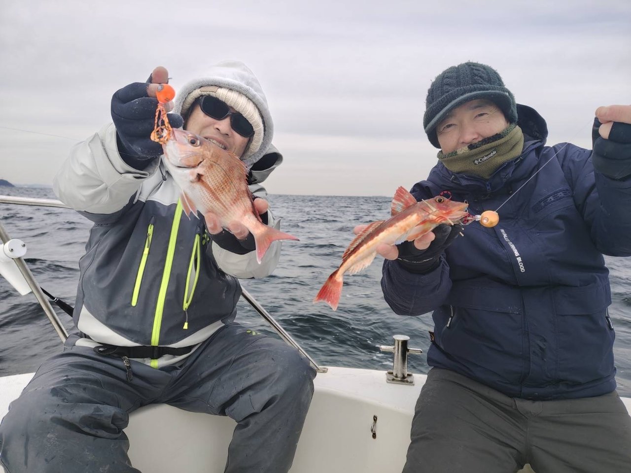 当日は北風が冷たく、海上は中々の寒さでした。風の影響で船は良く流れてくれますが、潮流も速く2回・3回と底を取り直すとあっという間に流されてしまいます。