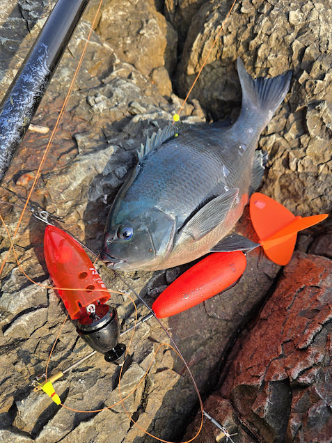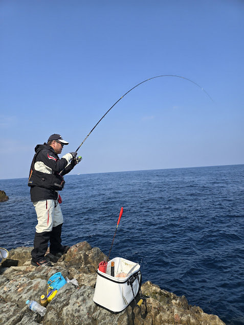 不穏な空気しか流れてませんでしたが私のロッドにマダイらしき反応が!