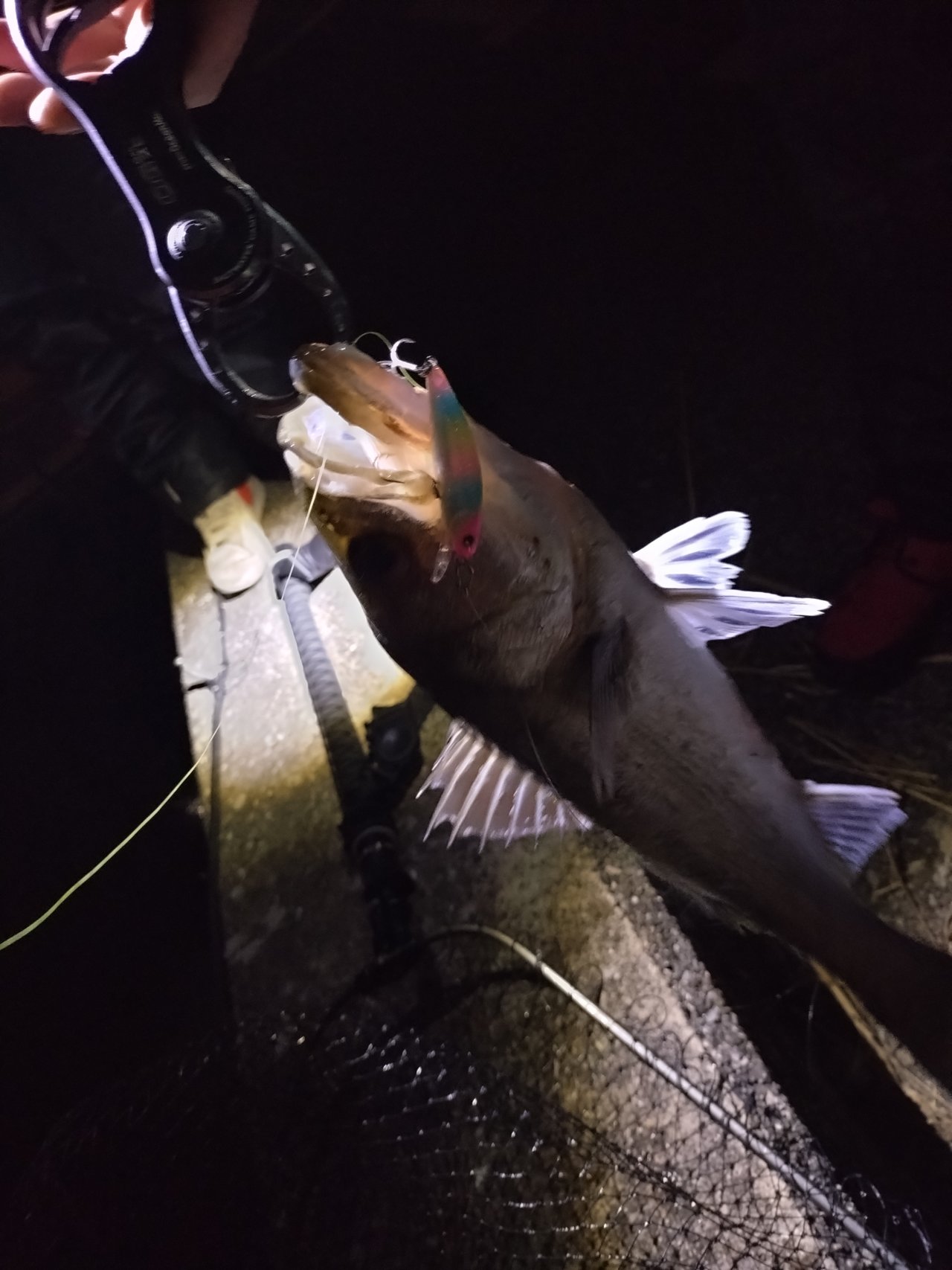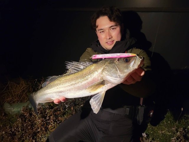 バチ抜けベストタイミングということで仕事終わりに近隣河川に行ってきました。ポイントに到着すると先に釣りをしていたスタッフ川奈部、飛田がWヒット中!釣れているじゃないですか!写真撮影をした後、自身も釣り開始。ゴミが多く、少しレンジを入れた方が良いとのことで、バチ抜けルアーではないですが、ロンジンのミズキをキャスト、少し巻いたらゴン!開始一投目で釣れてくれました、40㎝強くらい。話を聞くとバチも確認でき、アミもいたとのことでしたが、自分が到着したときには確認できず。それ以降3人でキャストしましたが、誤爆のみで終了となりました。スタッフ川奈部、飛田とも各2匹、私1匹とまずまずの釣果。これからもチャンスですので、また釣行してみます。