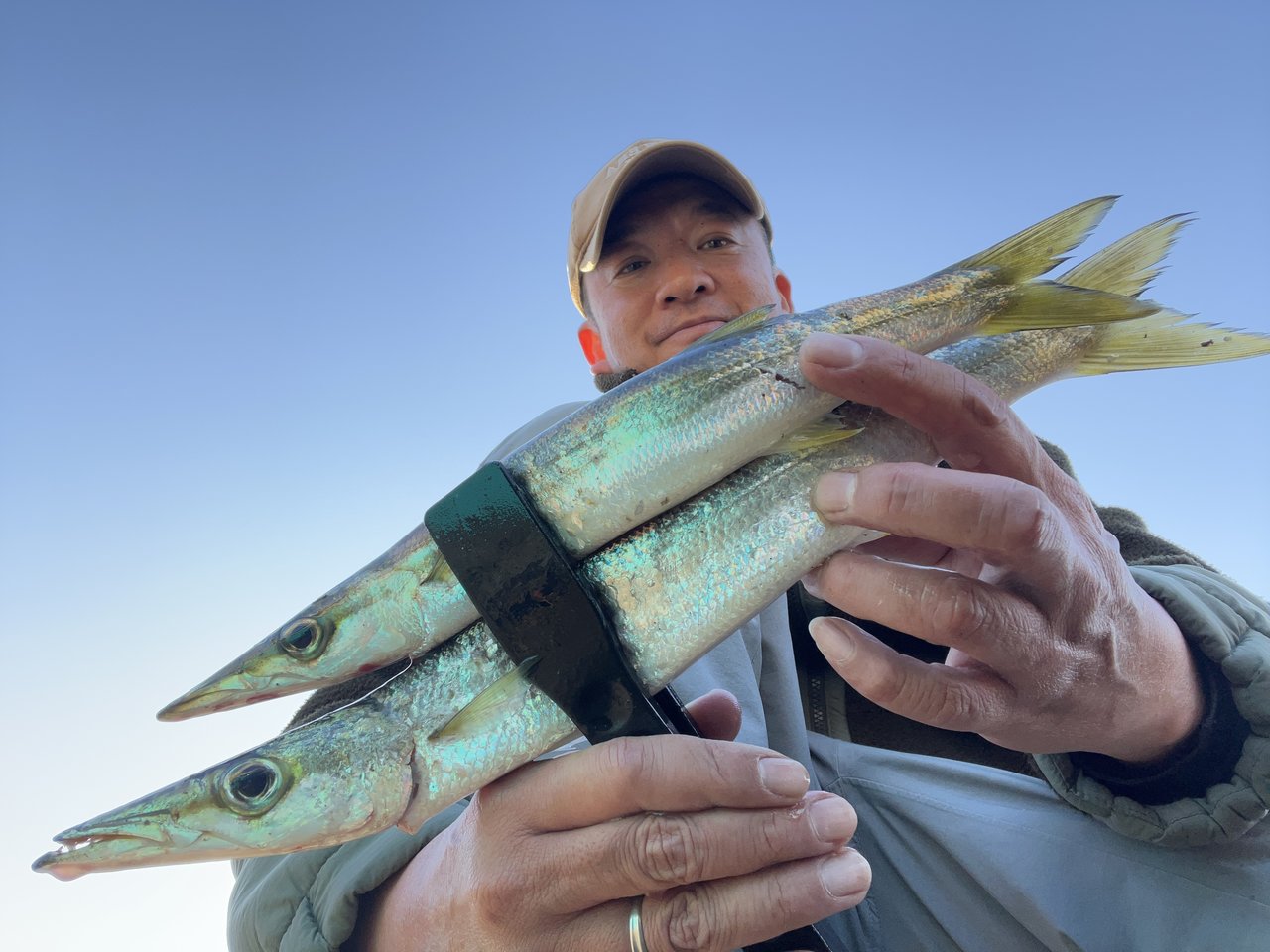 魚探に反応が出てたんで、ジギングしてみたら、グッドサイズのサワラがヒット。