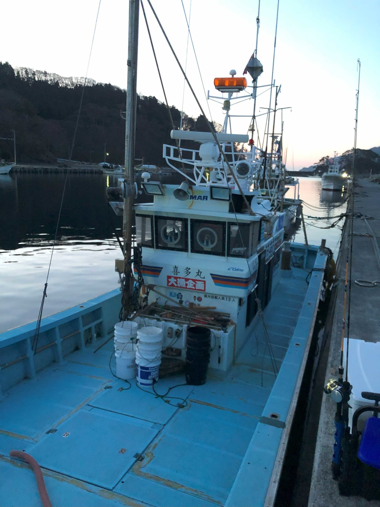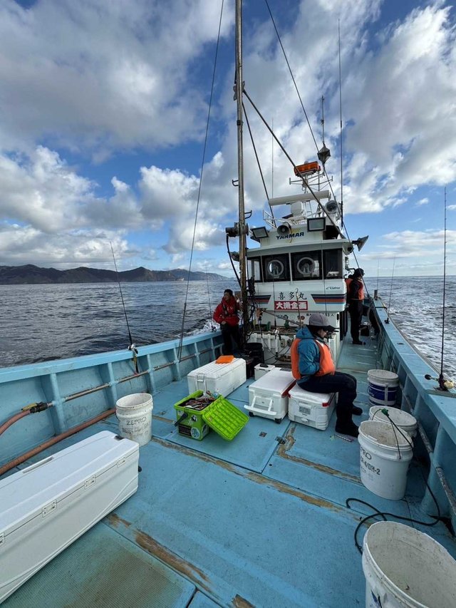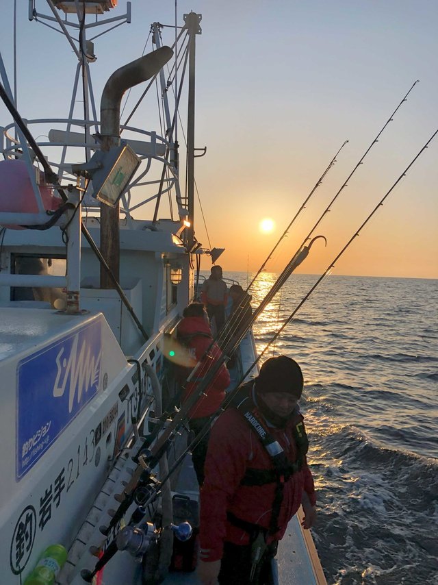 越喜来湾沖タラジギング2日目喜多丸さんで釣行。反応を見ながらポイントを変え誘うが前日からの状況は変わらず拾い釣り状態。一時トリプルヒットも見られクーラー満タンかと、思うもアタリは続かず・・・。普段流さない様なポイントも探すが釣果伸びずポツポツした釣果で終了。同行メンバー1人だけルアーが当たったのかアベレージ3Kg台を数釣りしてました。クーラー満タンにはなりませんでしたがボトムからの強烈な引き味を楽しめた釣行となありました。