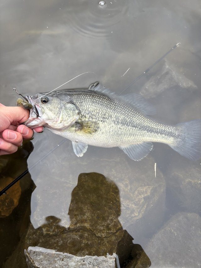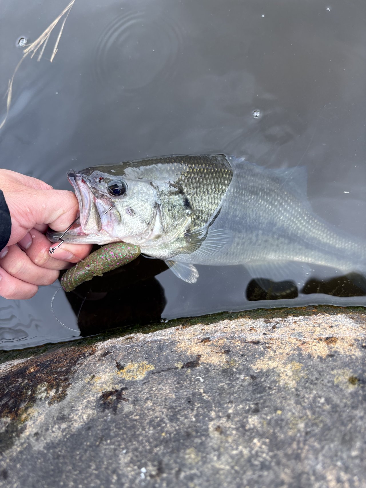 と出てきて開始5分ほどで水中からの反応があり46cmのバスをキャッチ!